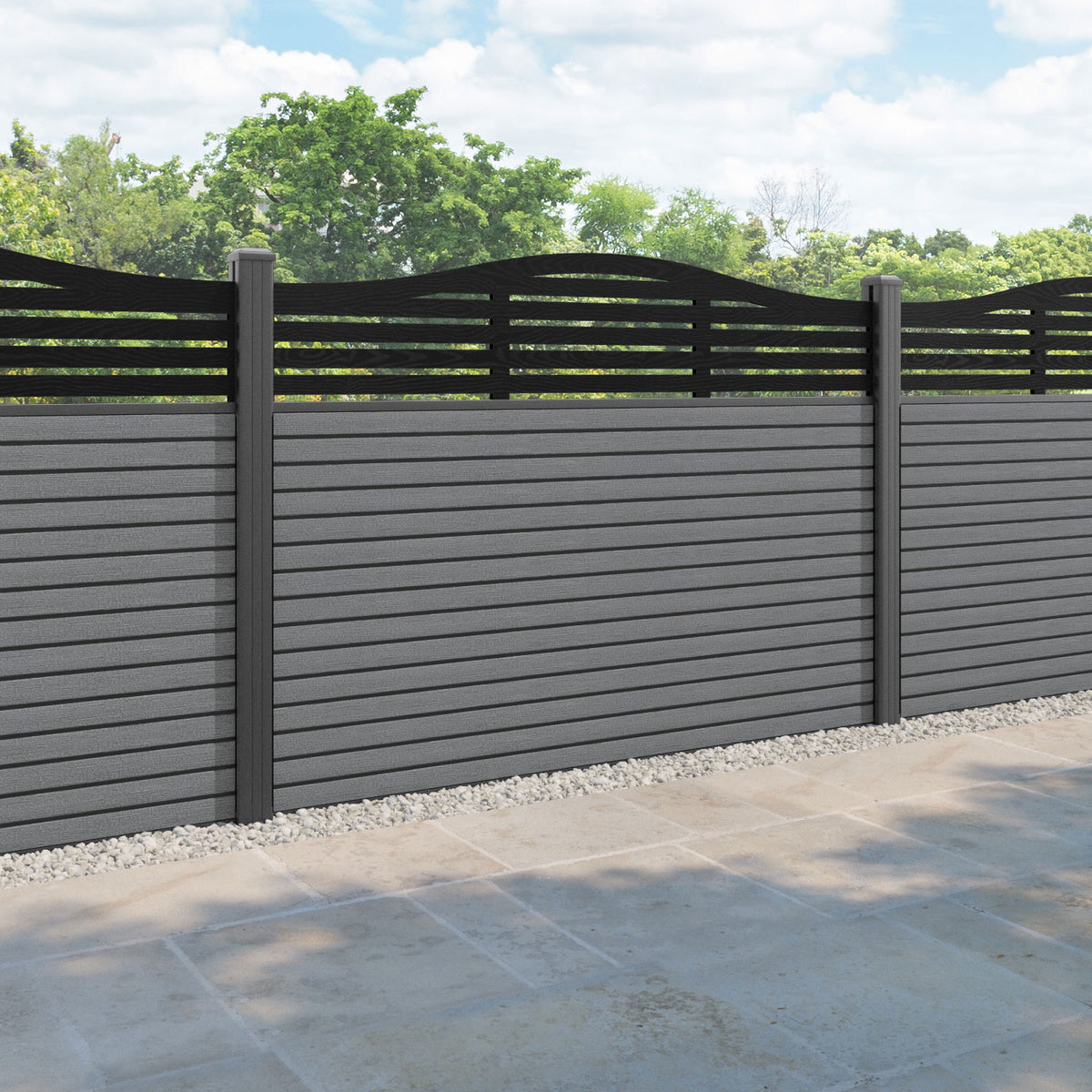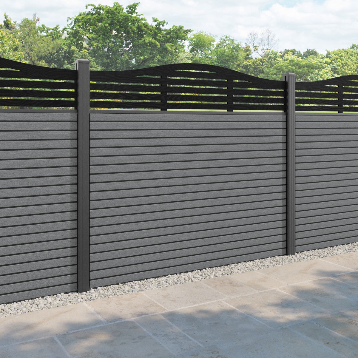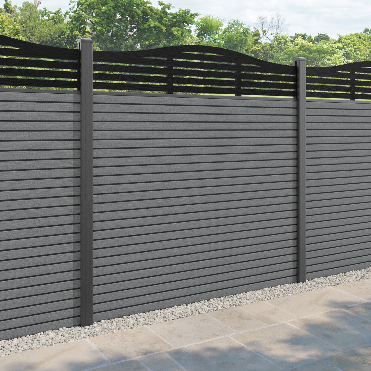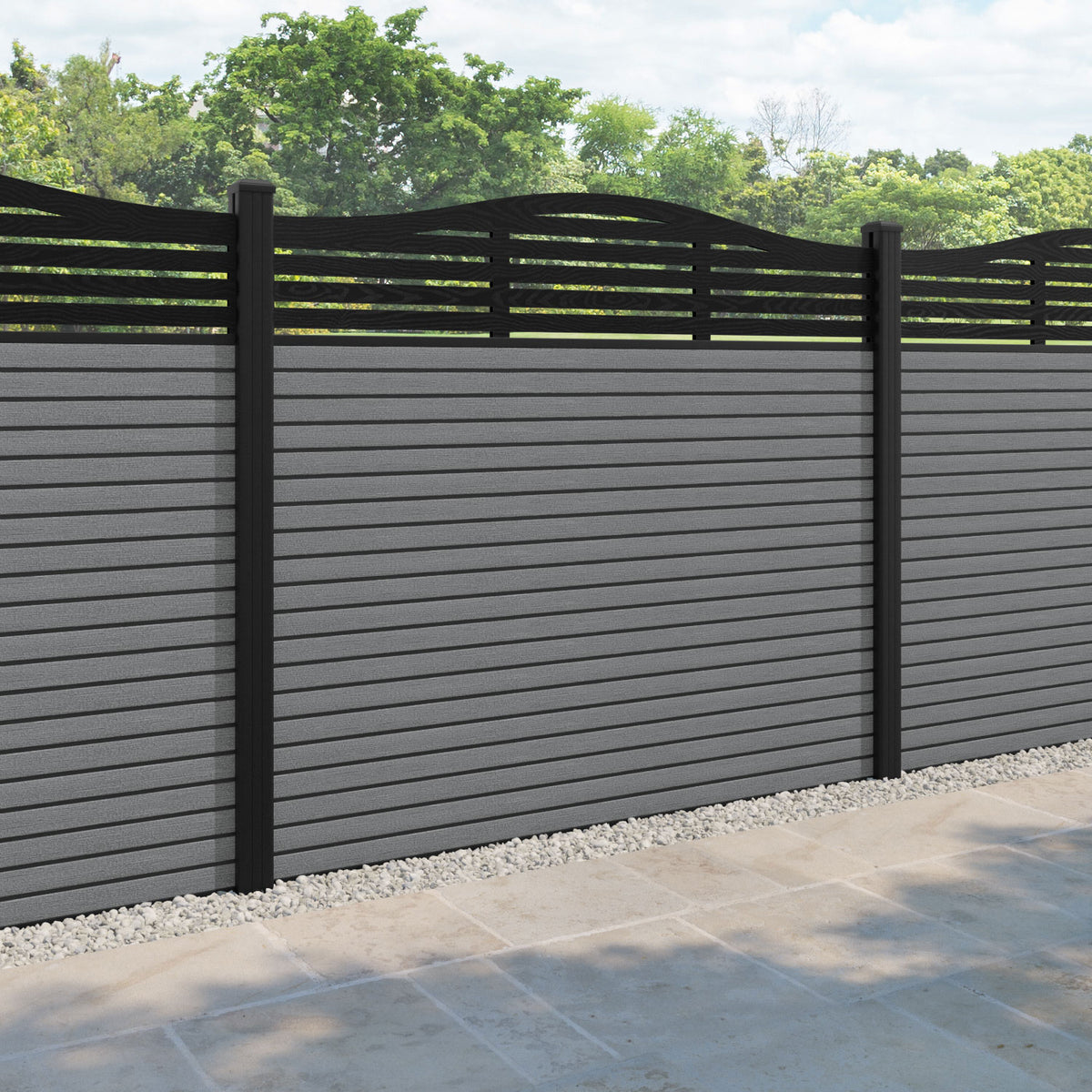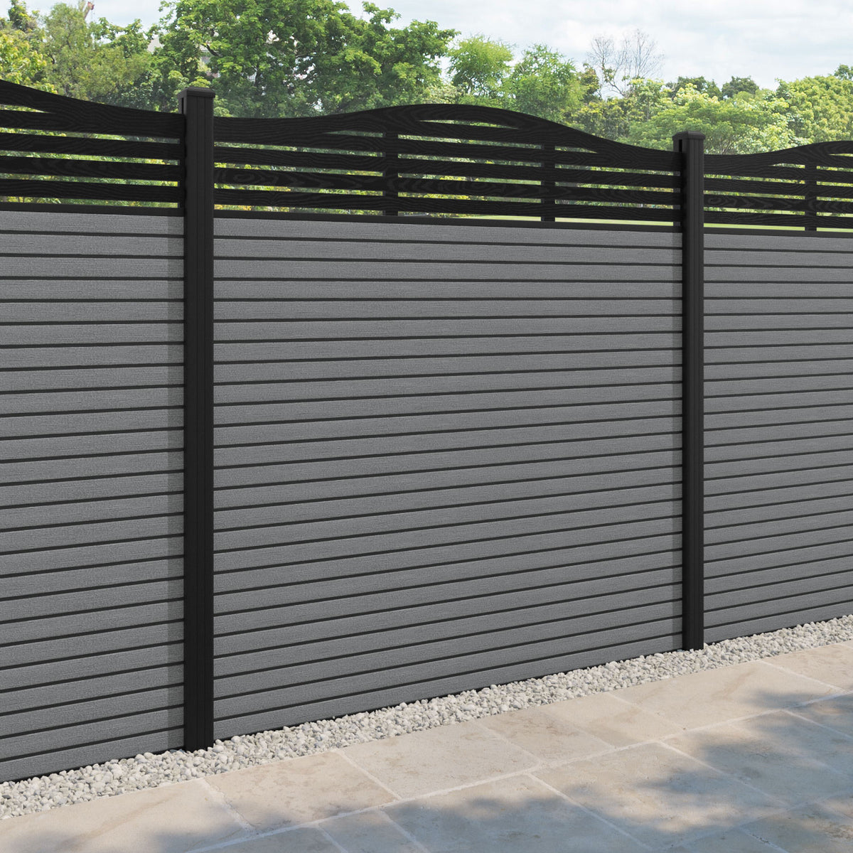 Hudson Aspen Curved Top Fence Panel Mid Grey - with our aluminium posts