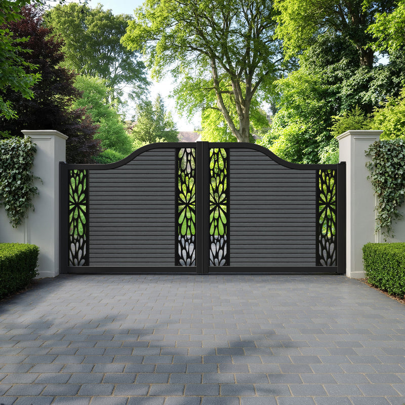 Hudson Blossom Curved Top Driveway Gate Dark Grey - Middle & End Screen