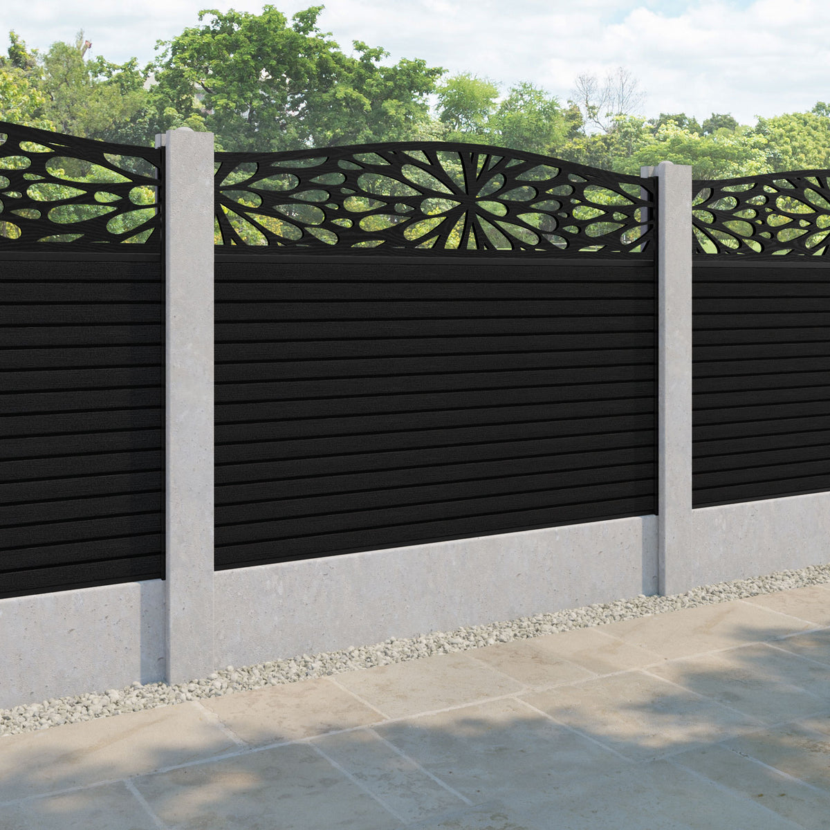 Hudson Blossom Curved Top Fence Panel Black - for existing concrete posts