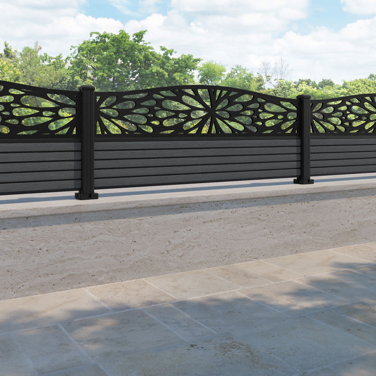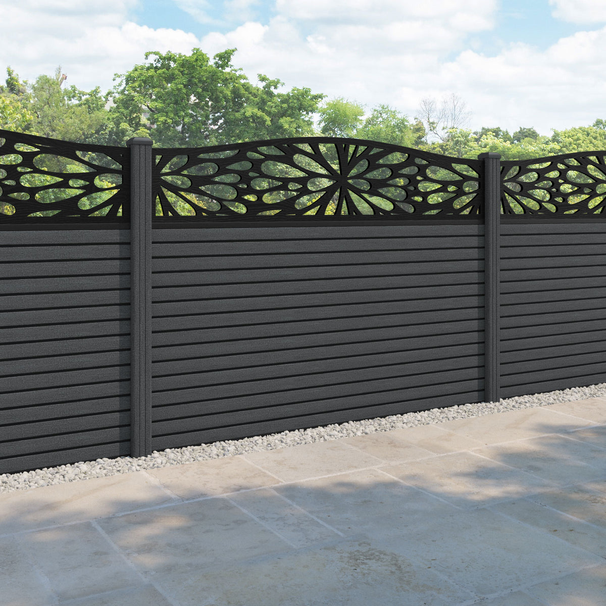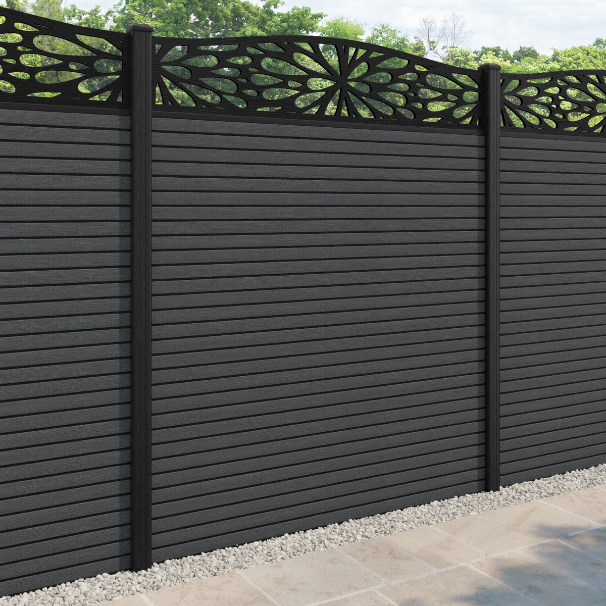 Hudson Blossom Curved Top Fence Panel Dark Grey - with our composite posts