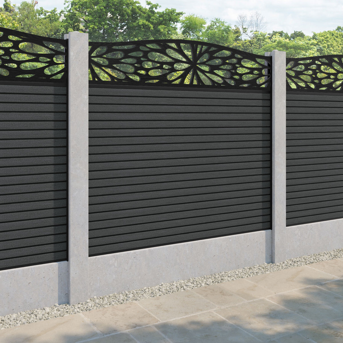 Hudson Blossom Curved Top Fence Panel Dark Grey - for existing concrete posts