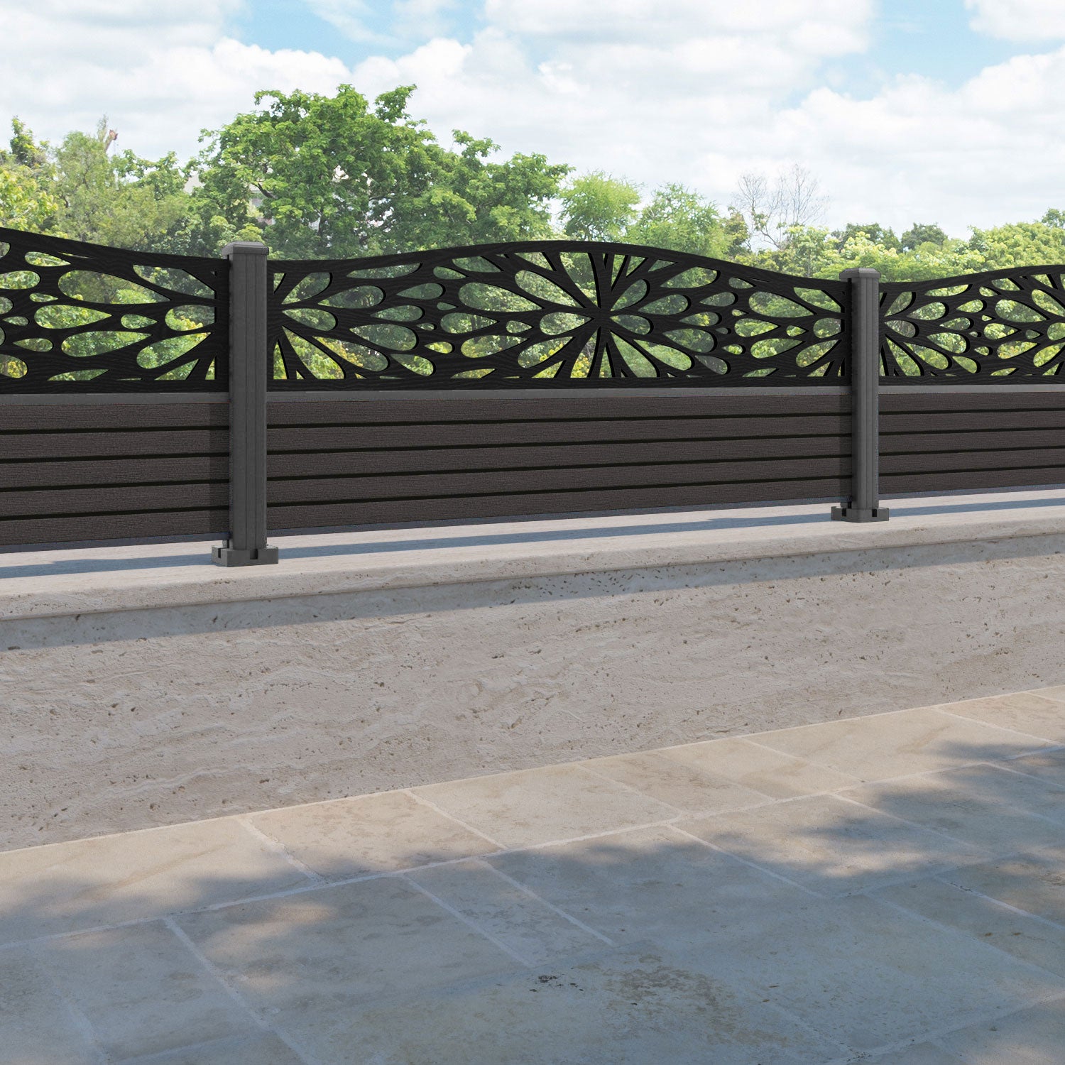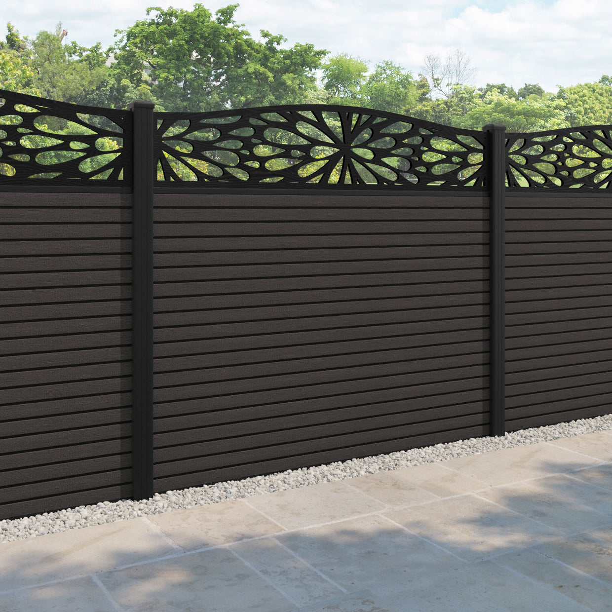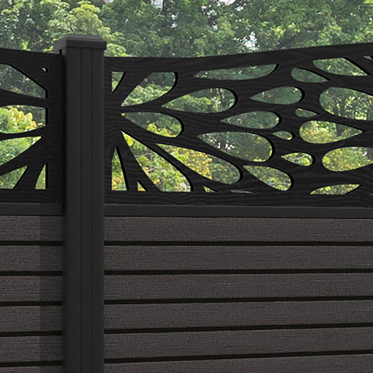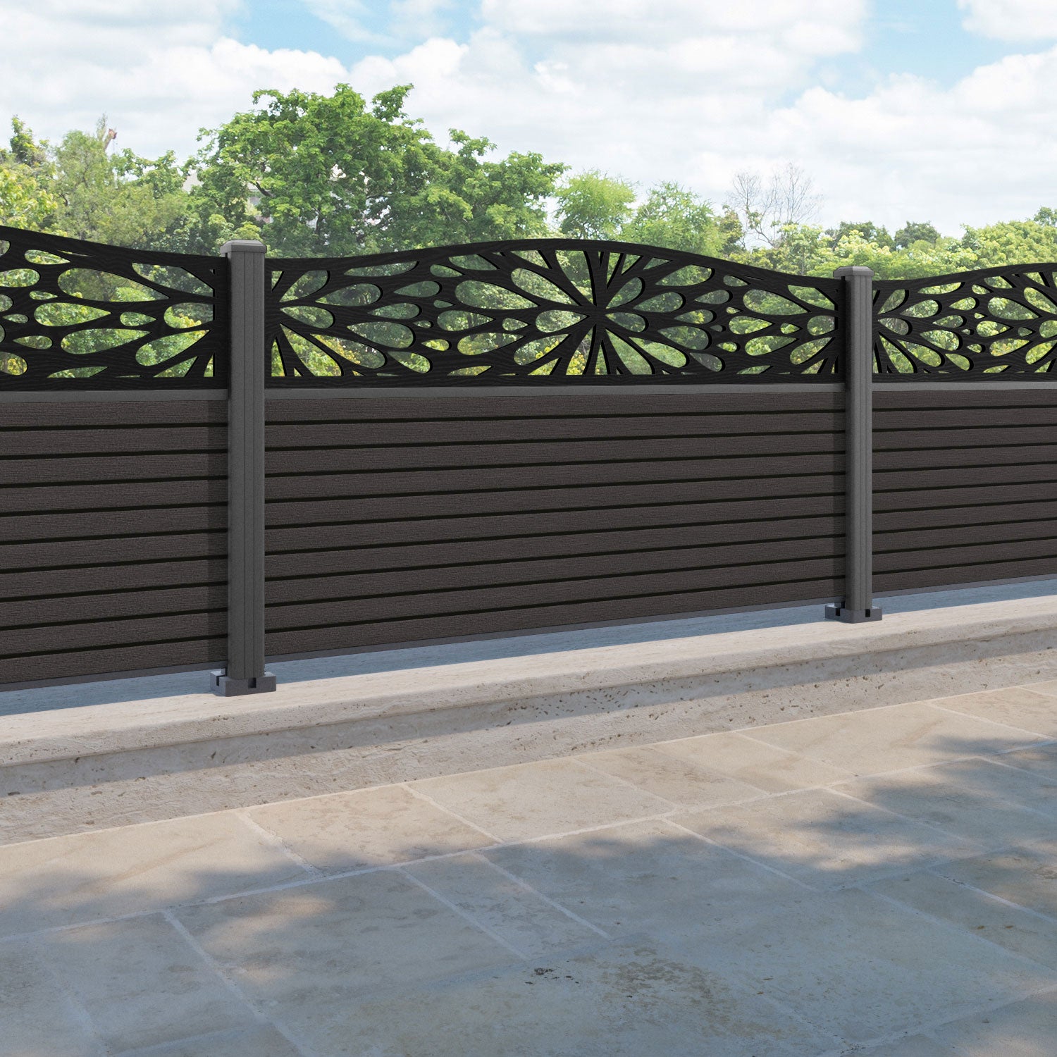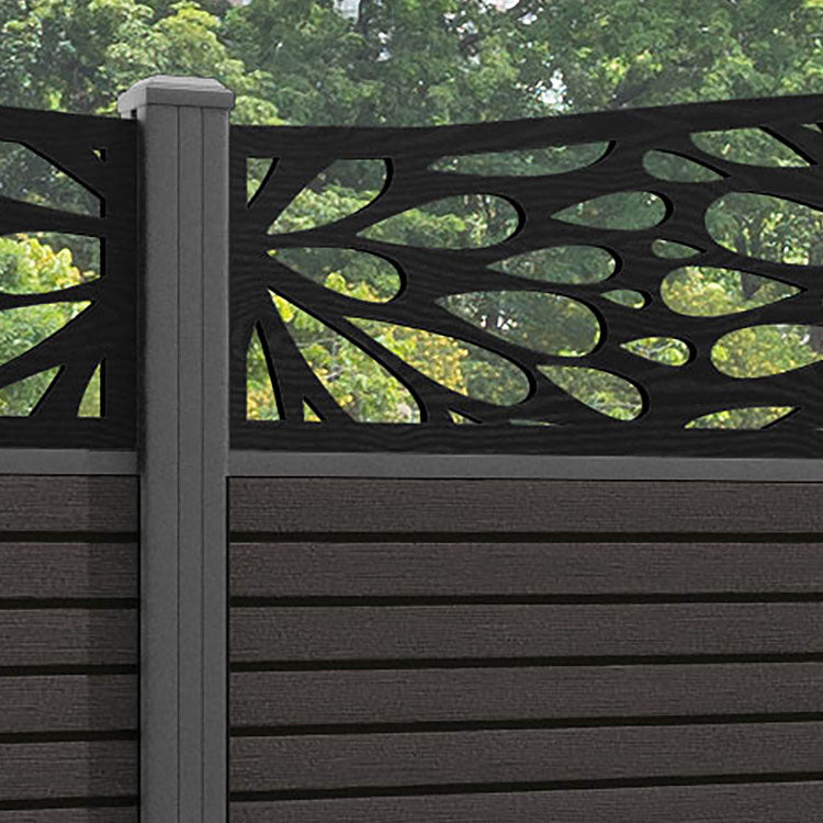 Hudson Blossom Curved Top Fence Panel Dark Oak - with our aluminium posts
