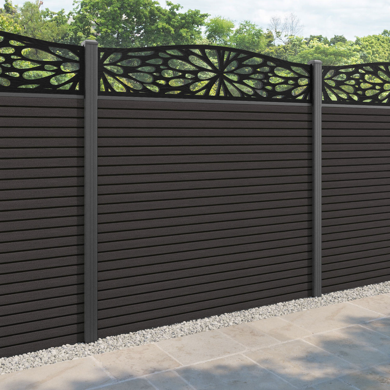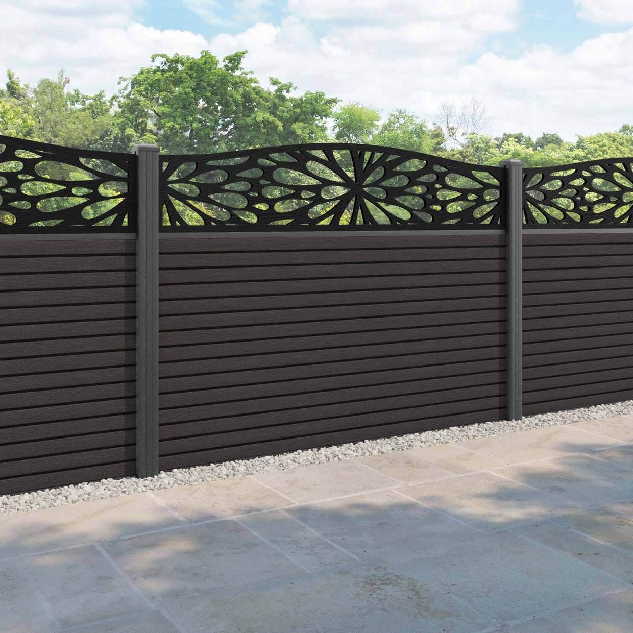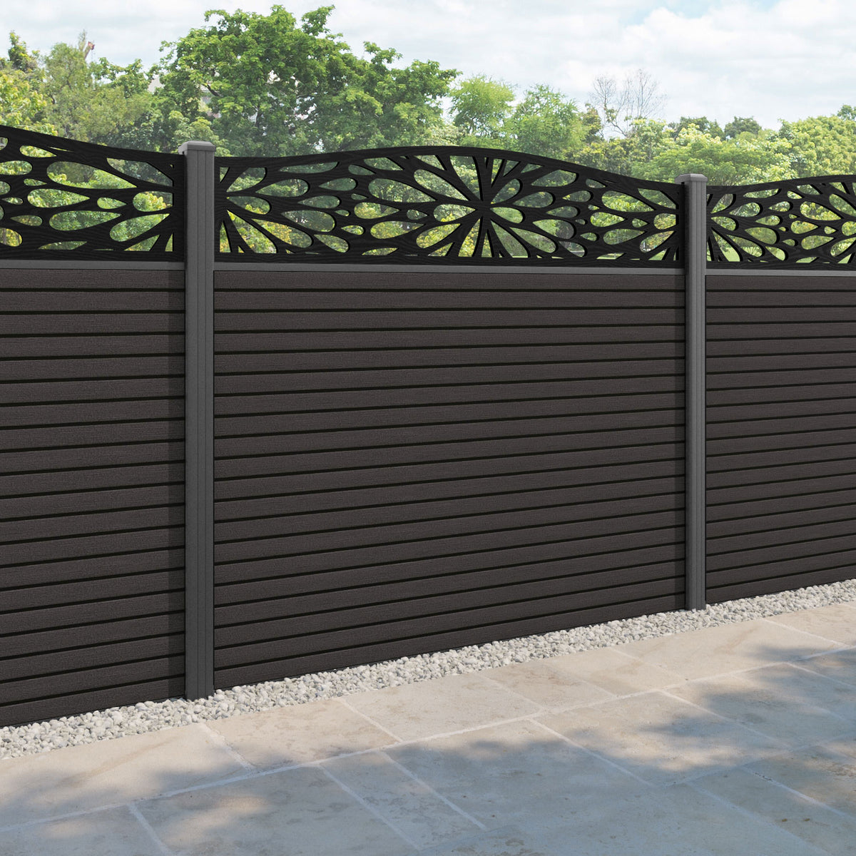 Hudson Blossom Curved Top Fence Panel Dark Oak - with our aluminium posts