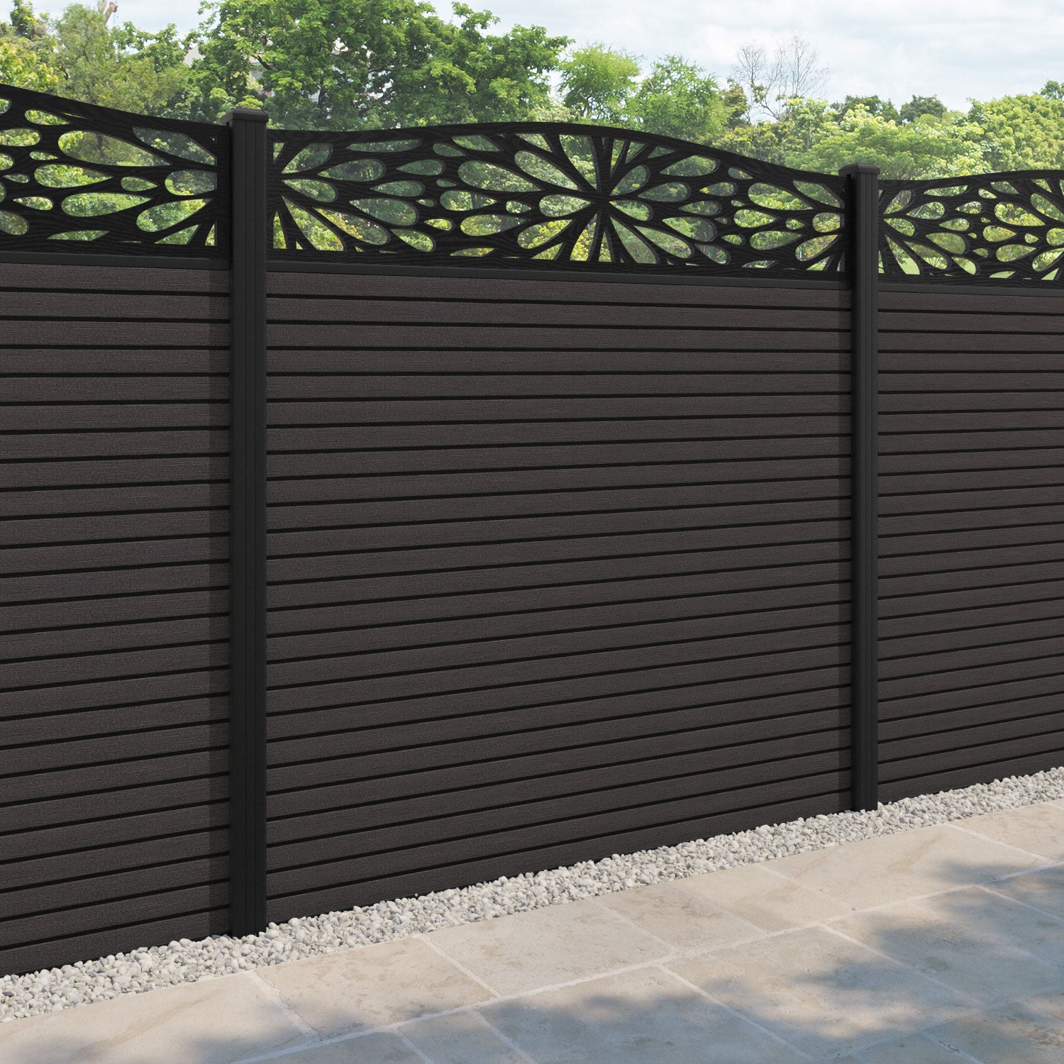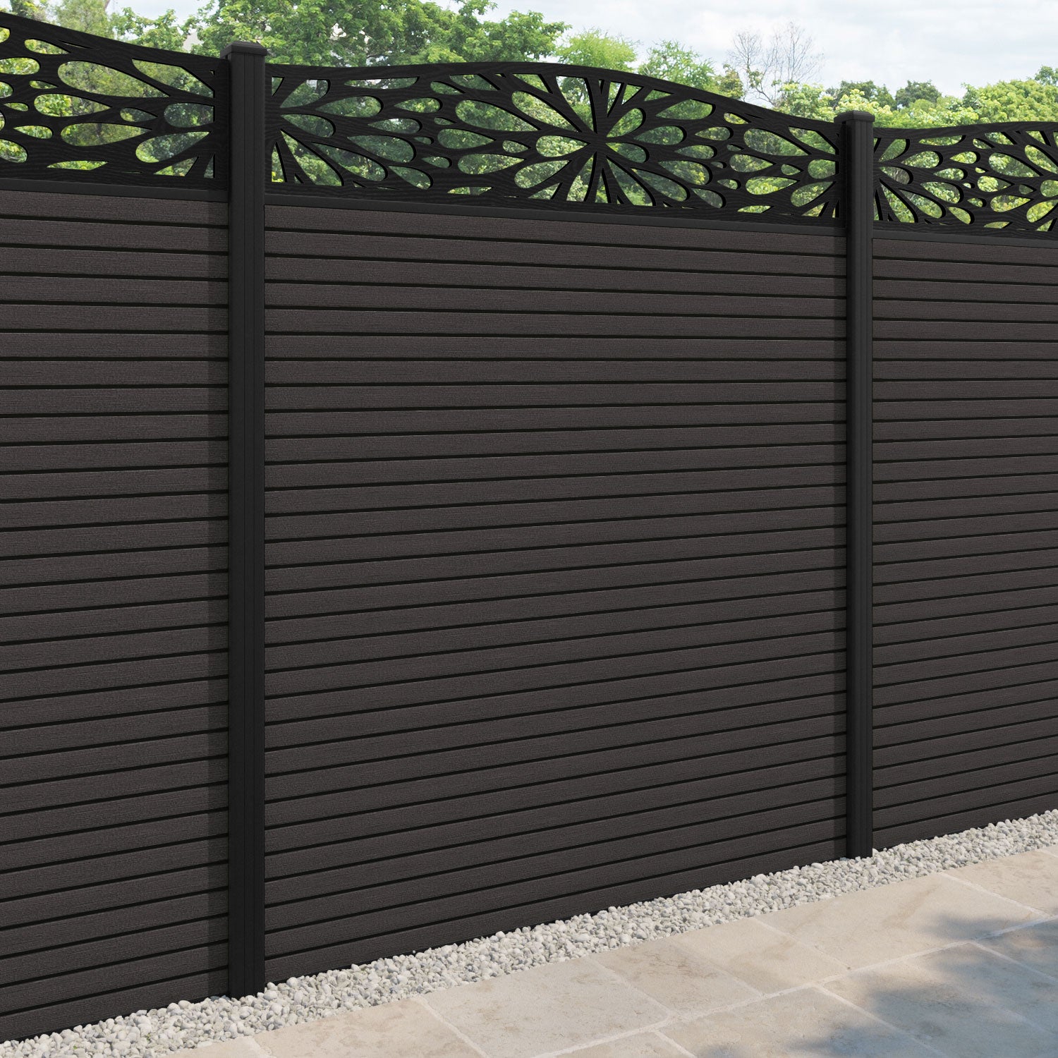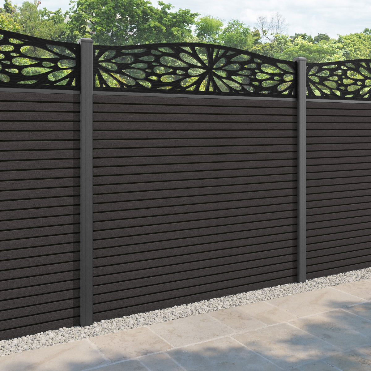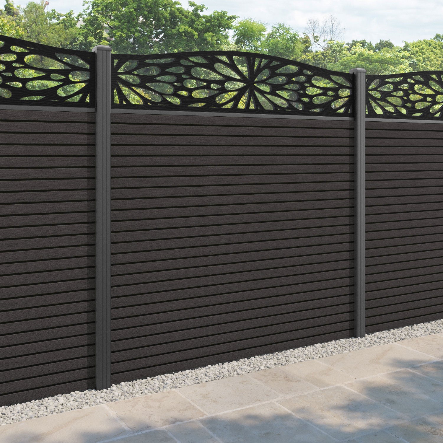 Hudson Blossom Curved Top Fence Panel Dark Oak - with our aluminium posts