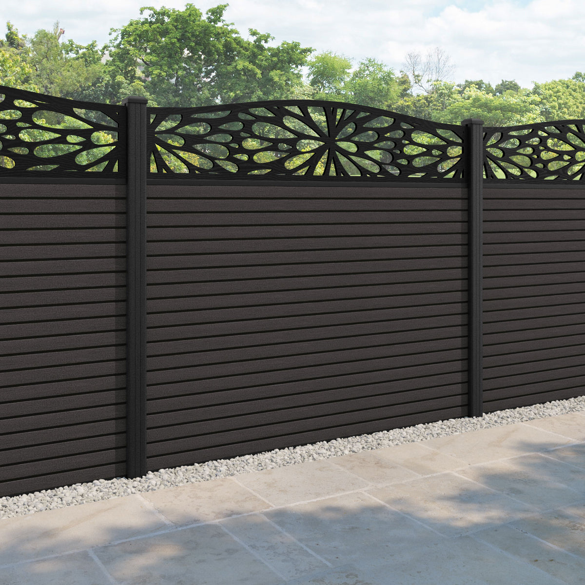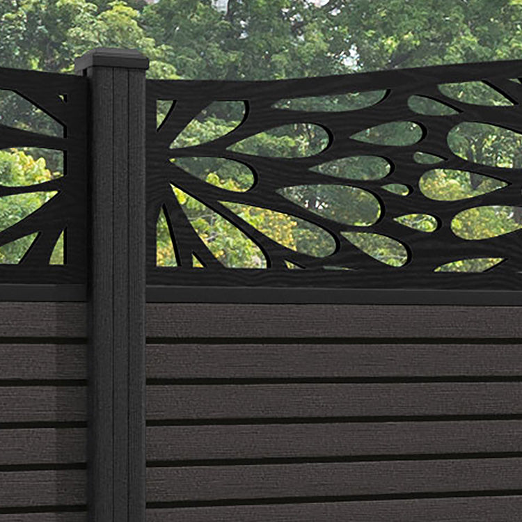 Hudson Blossom Curved Top Fence Panel Dark Oak - with our composite posts