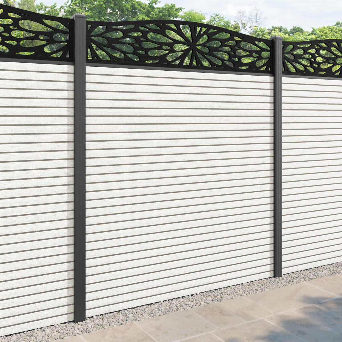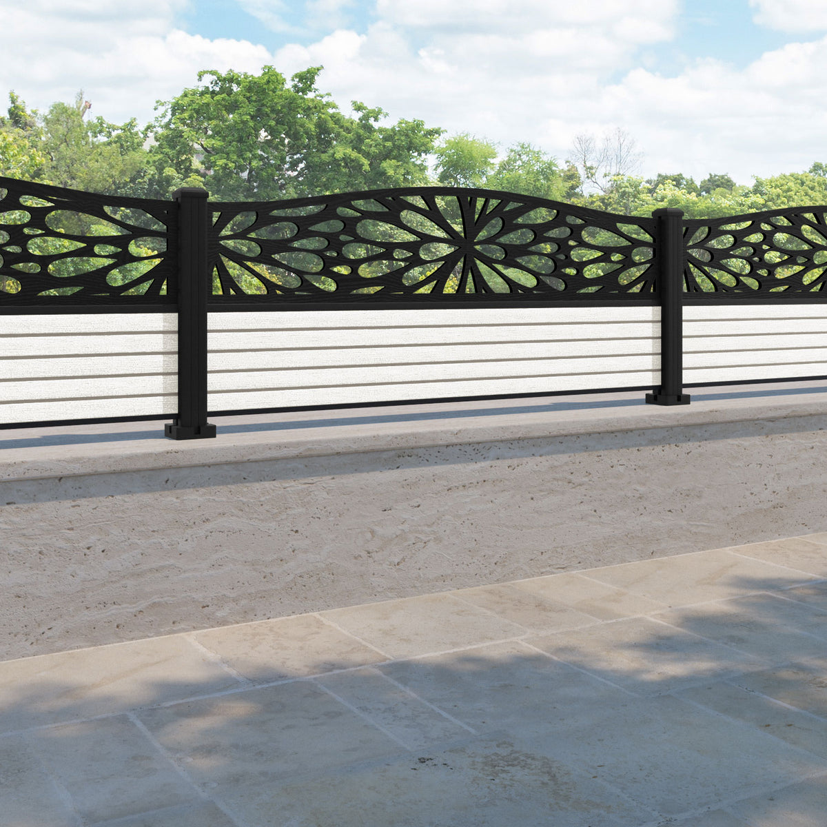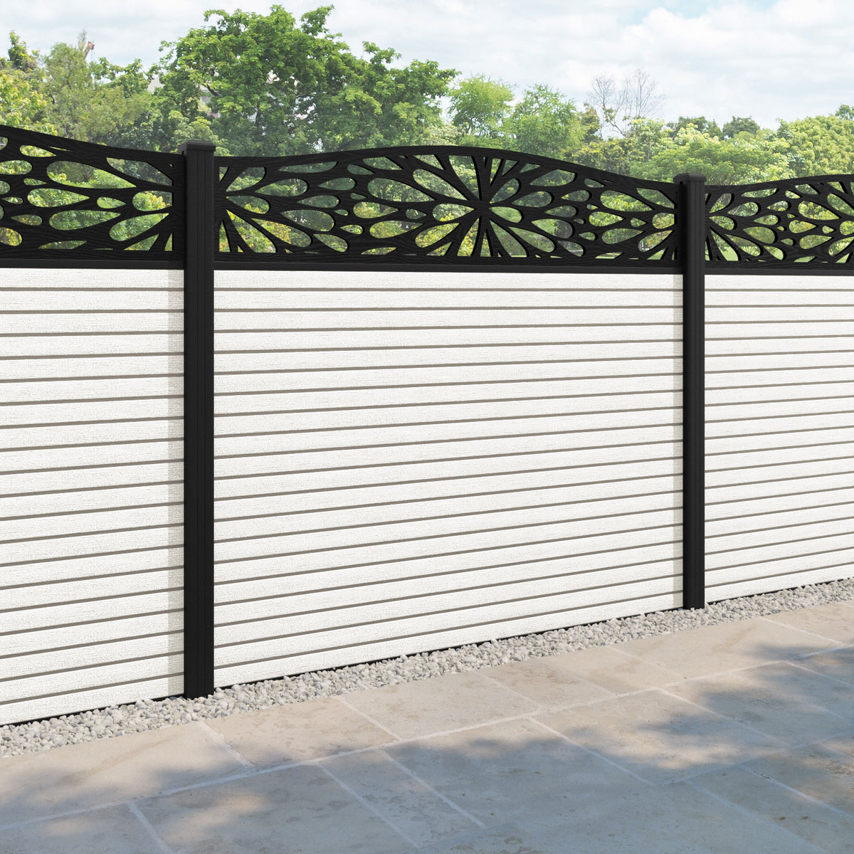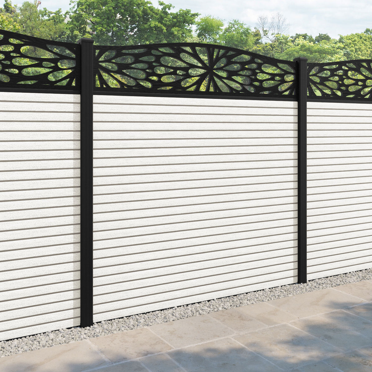 Hudson Blossom Curved Top Fence Panel Light Stone - with our aluminium posts