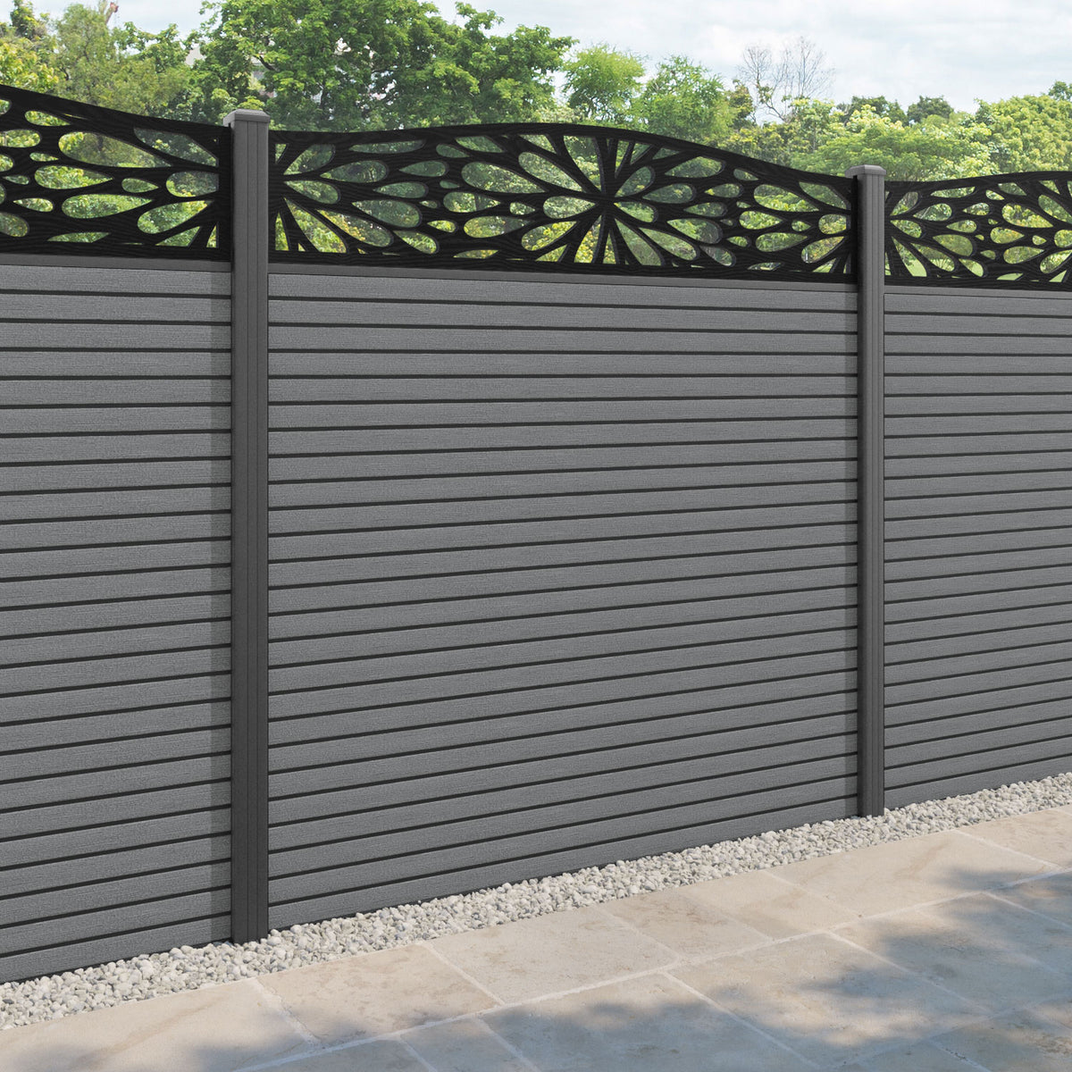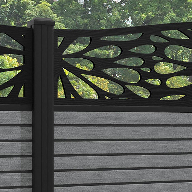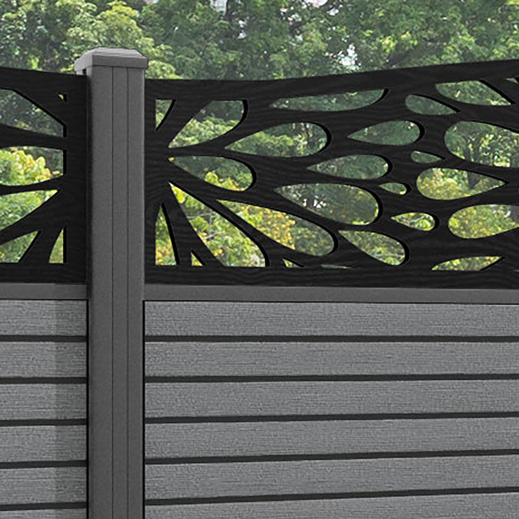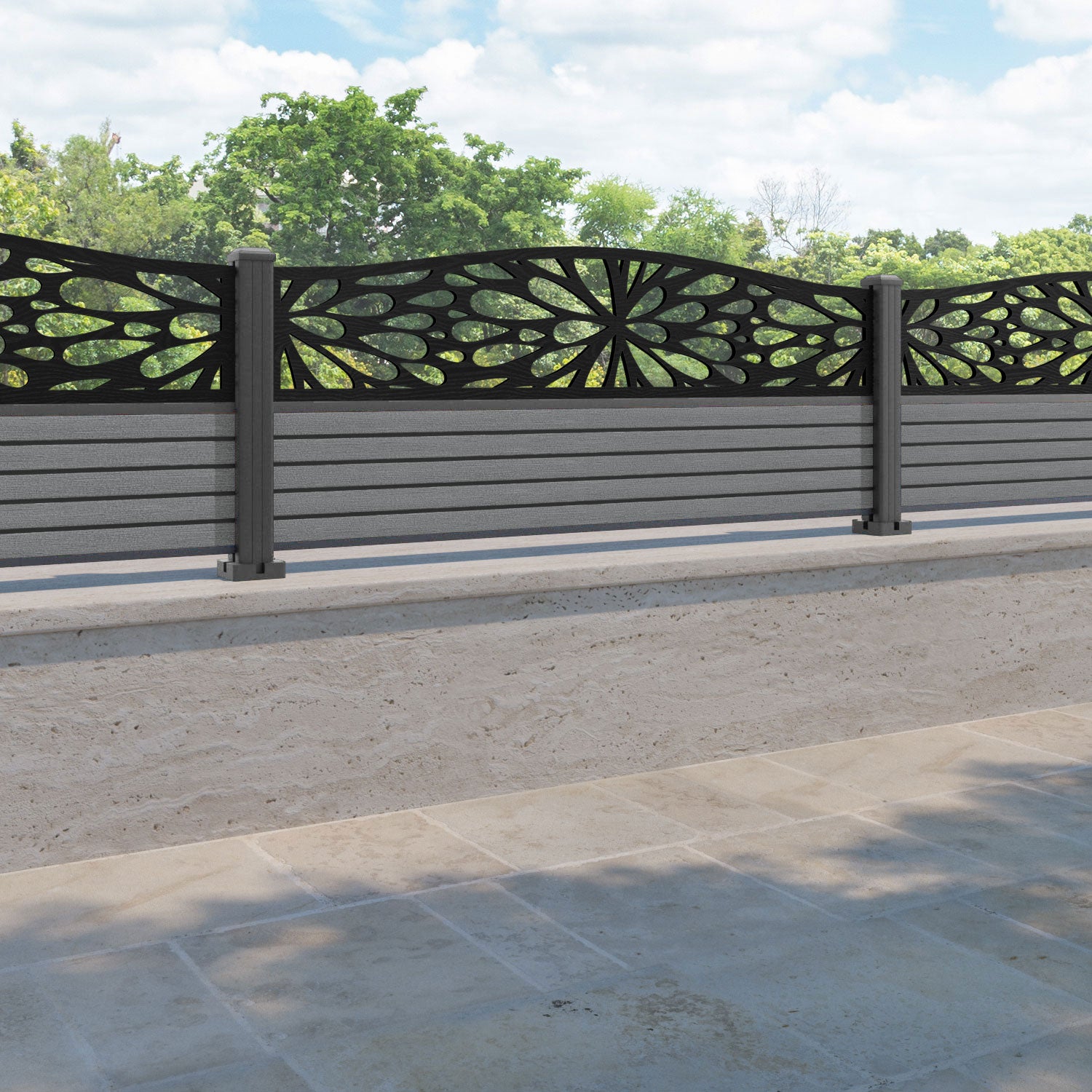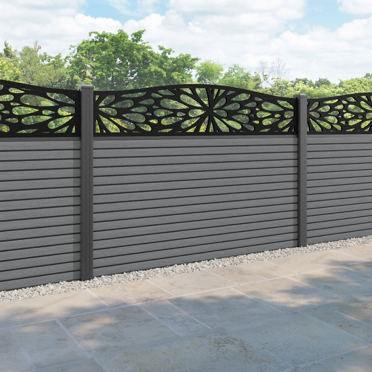 Hudson Blossom Curved Top Fence Panel Mid Grey - with our aluminium posts