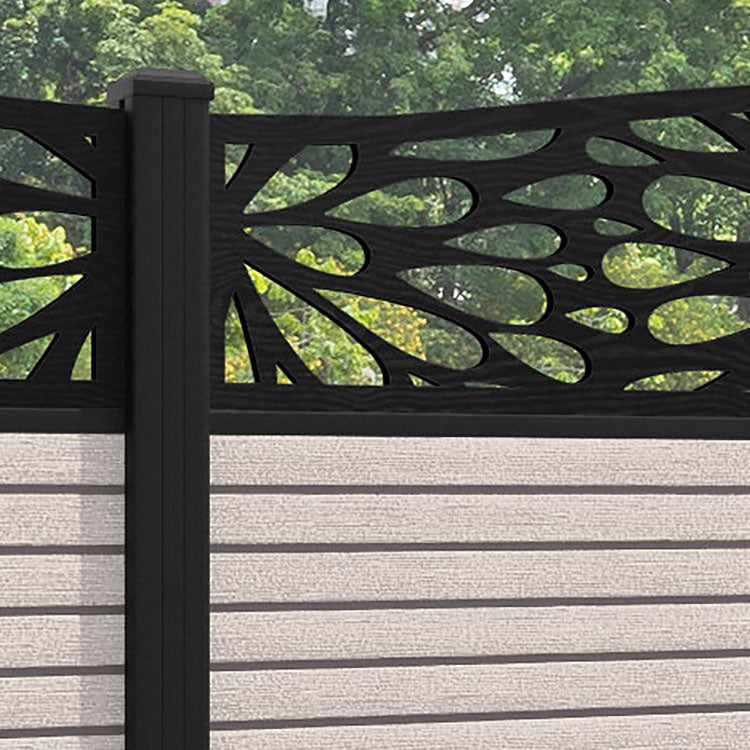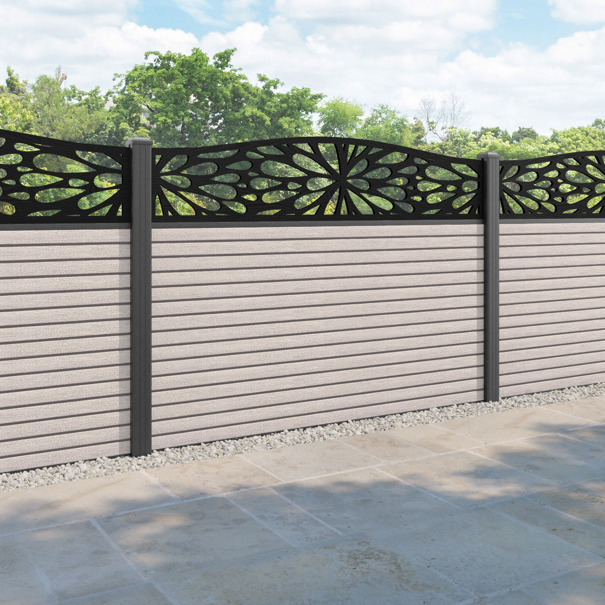 Hudson Blossom Curved Top Fence Panel Mid Stone - with our aluminium posts
