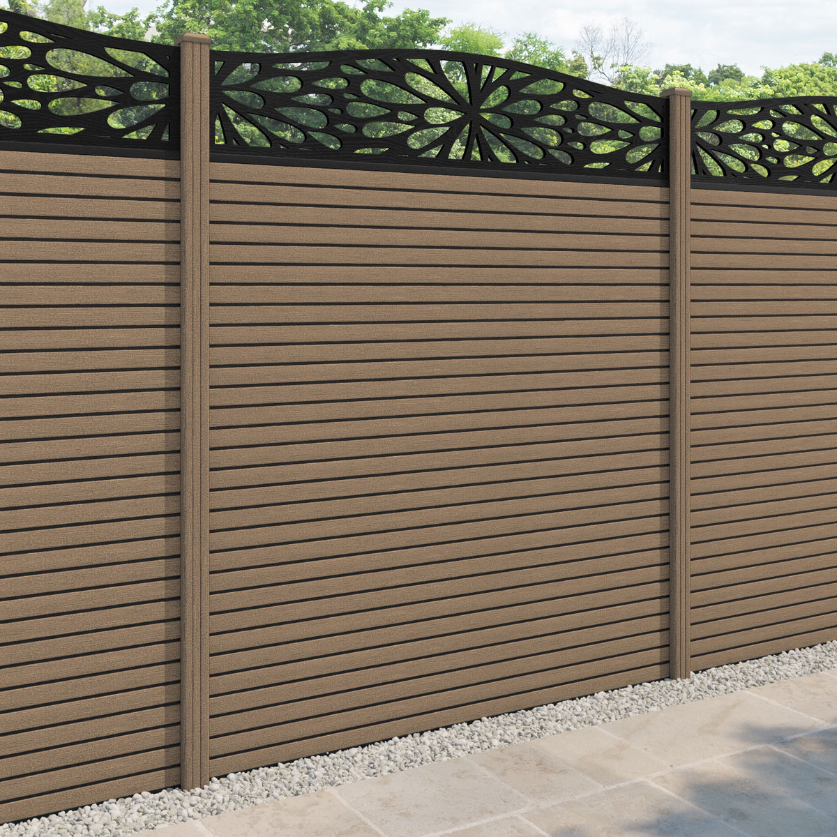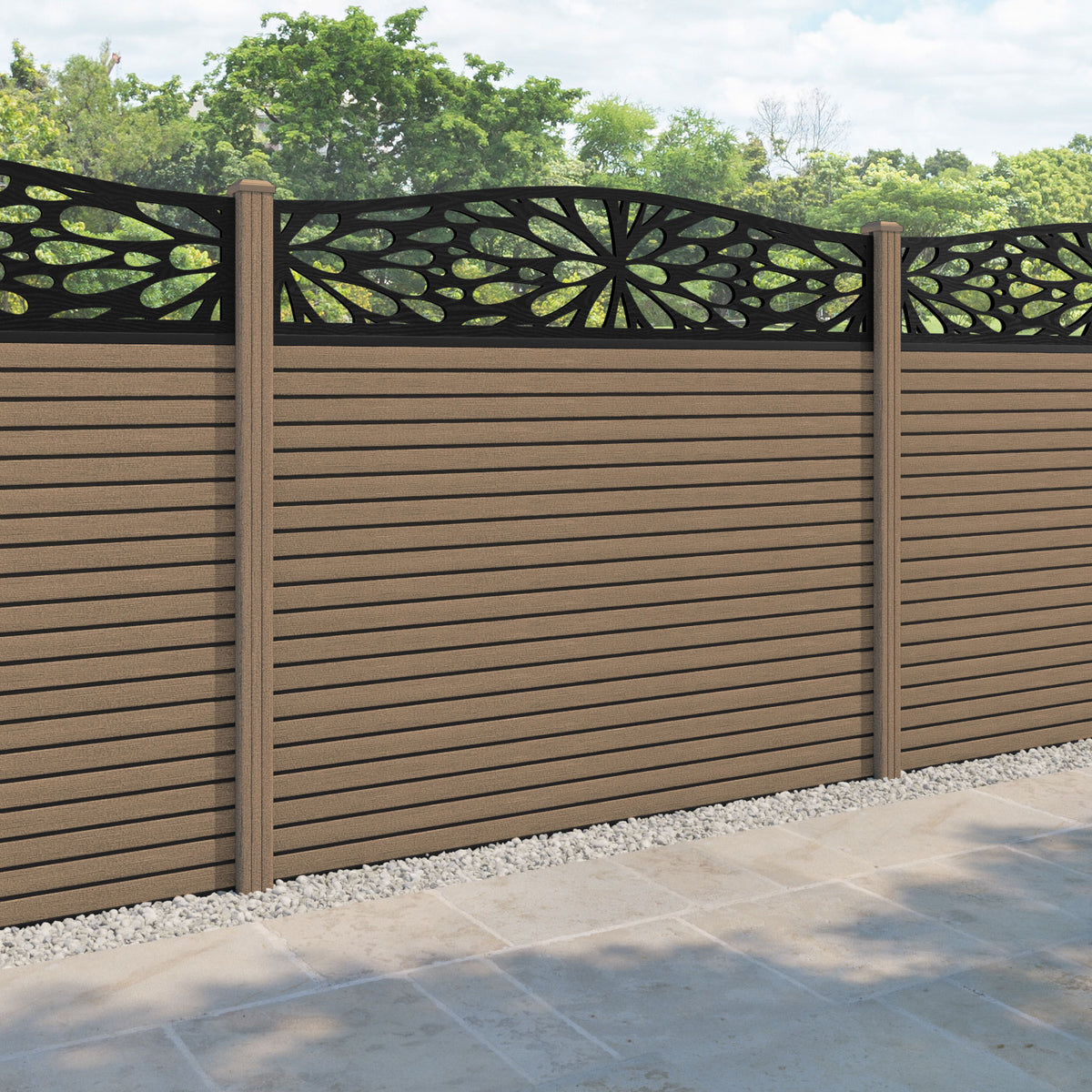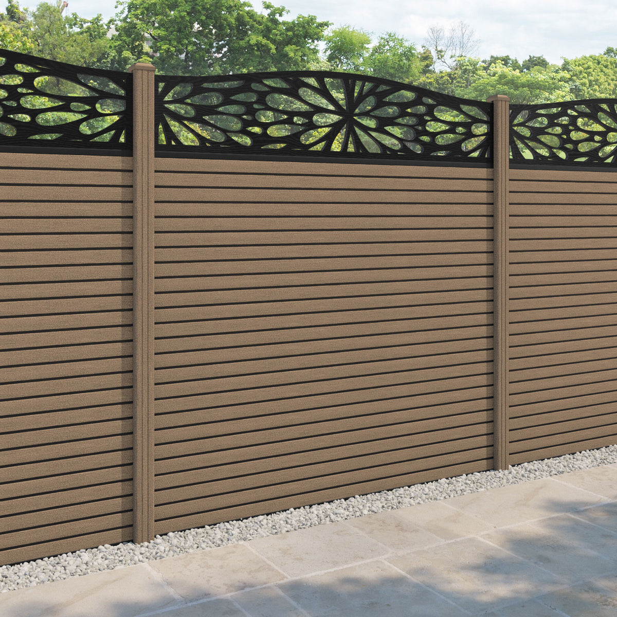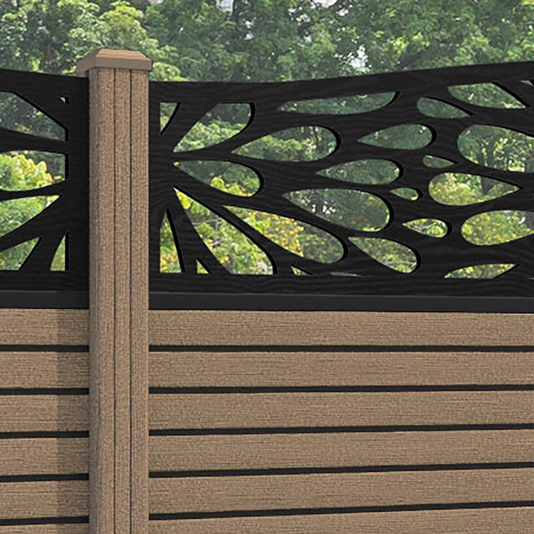 Hudson Blossom Curved Top Fence Panel Teak - with our composite posts