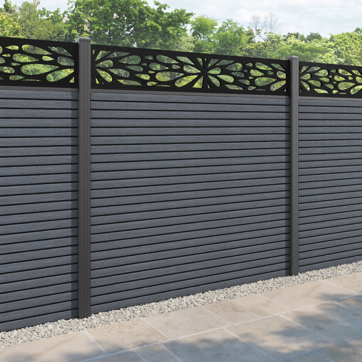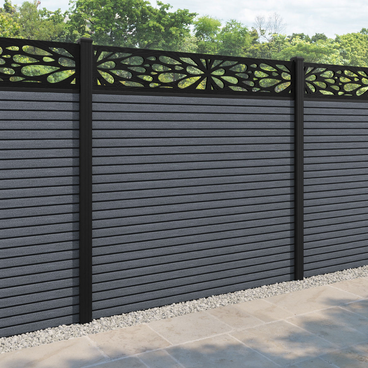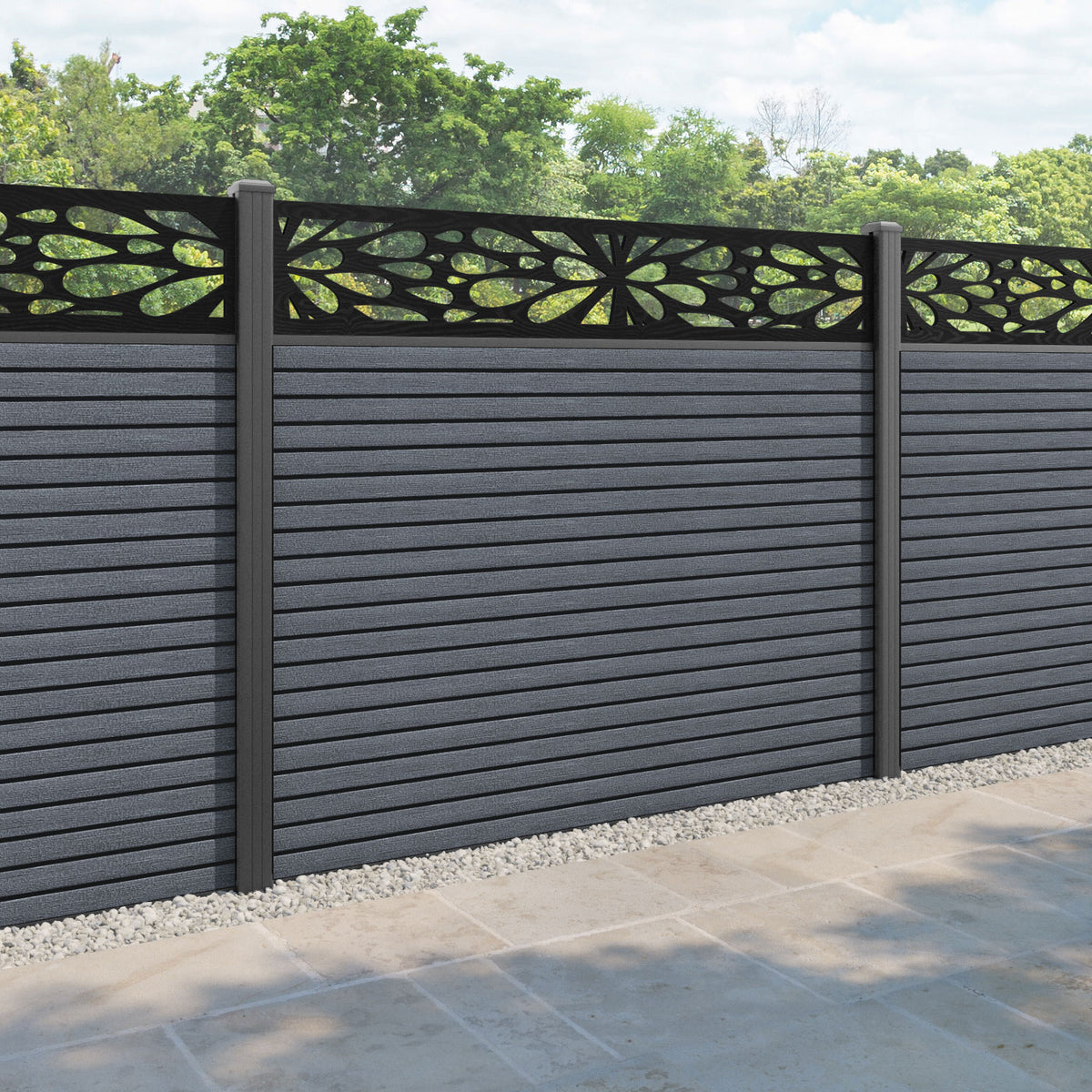 Hudson Blossom Fence Panel Anthracite - with our aluminium posts