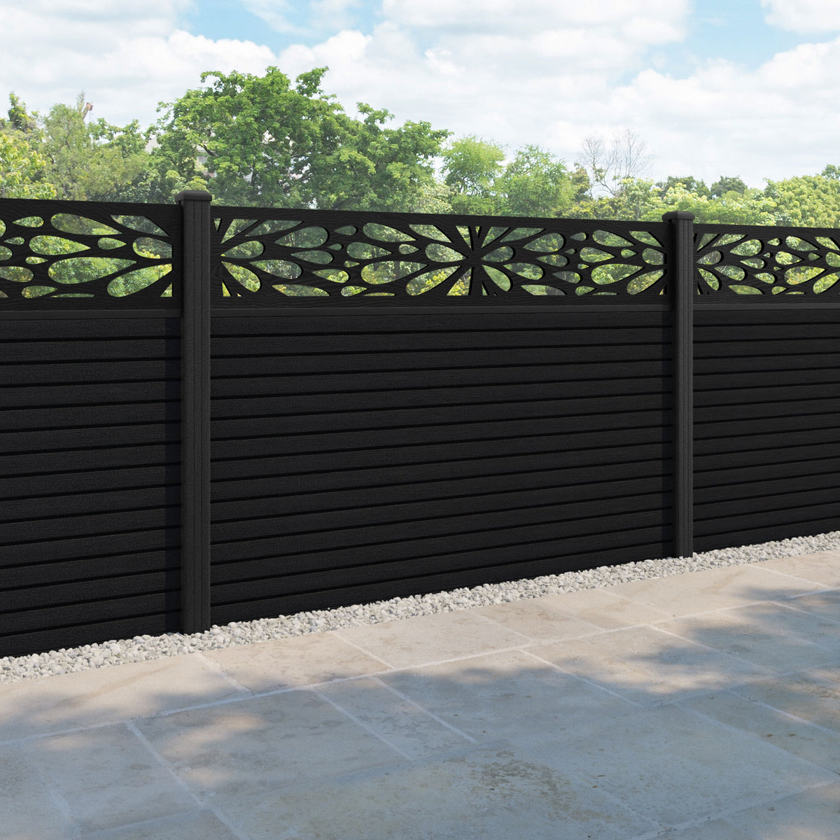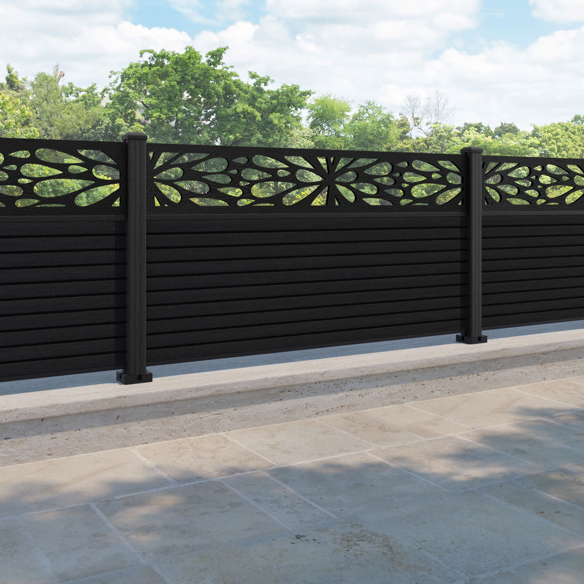 Hudson Blossom Fence Panel Black - with our composite posts