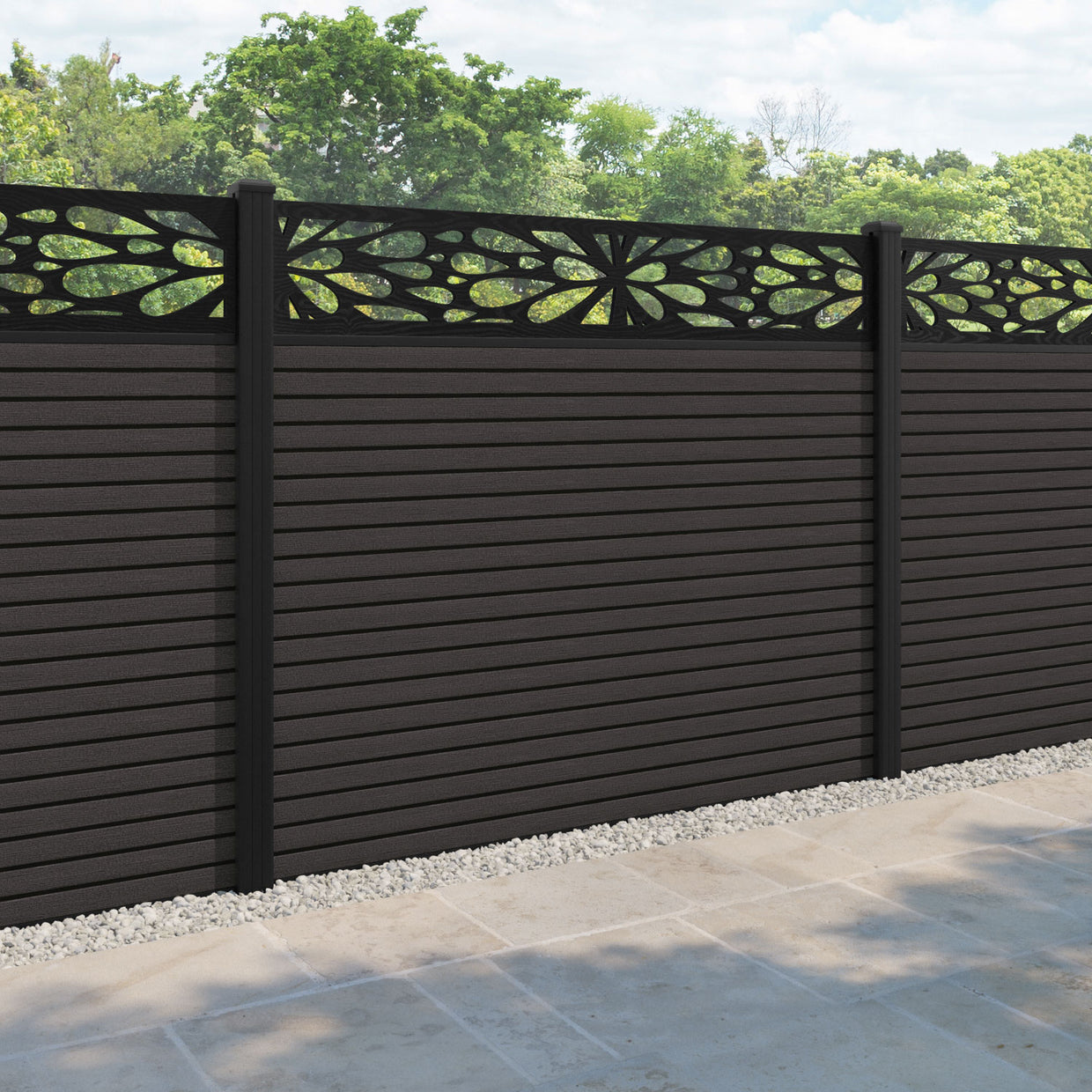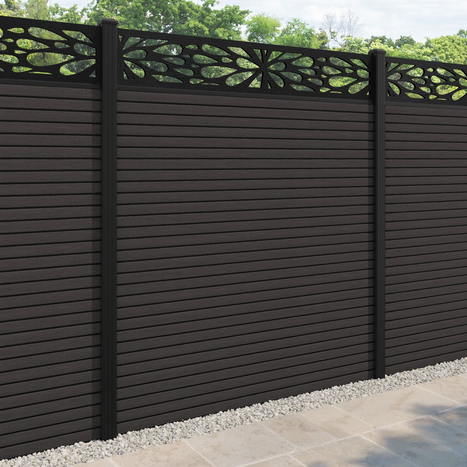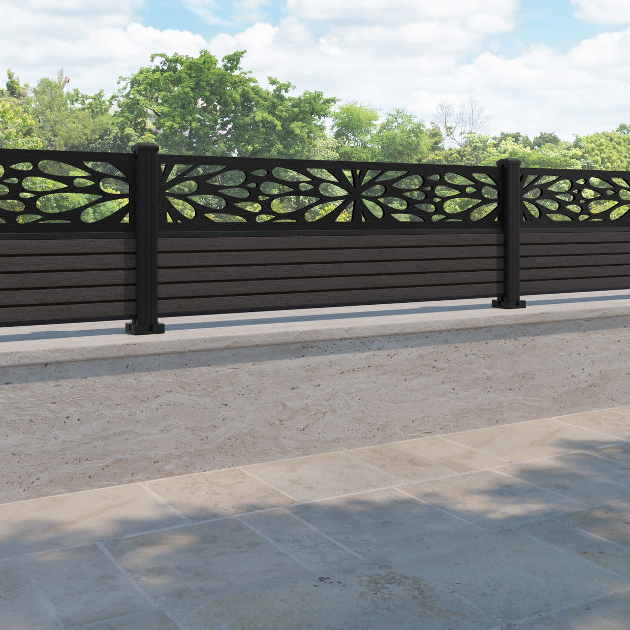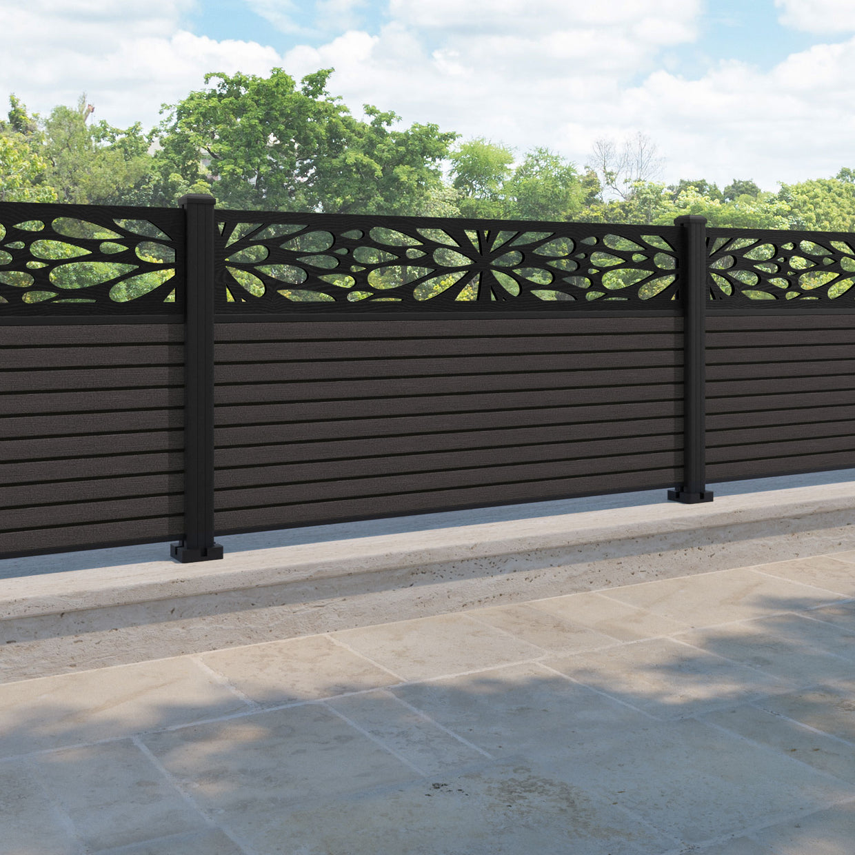 Hudson Blossom Fence Panel Dark Oak - with our aluminium posts