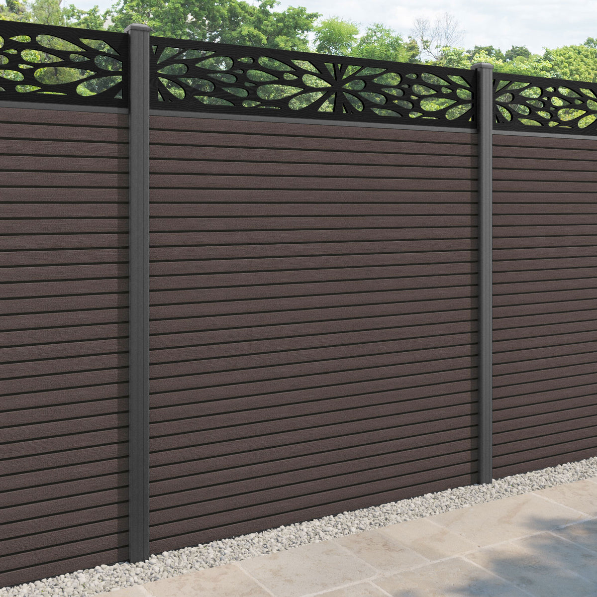 Hudson Blossom Fence Panel Mid Brown - with our aluminium posts