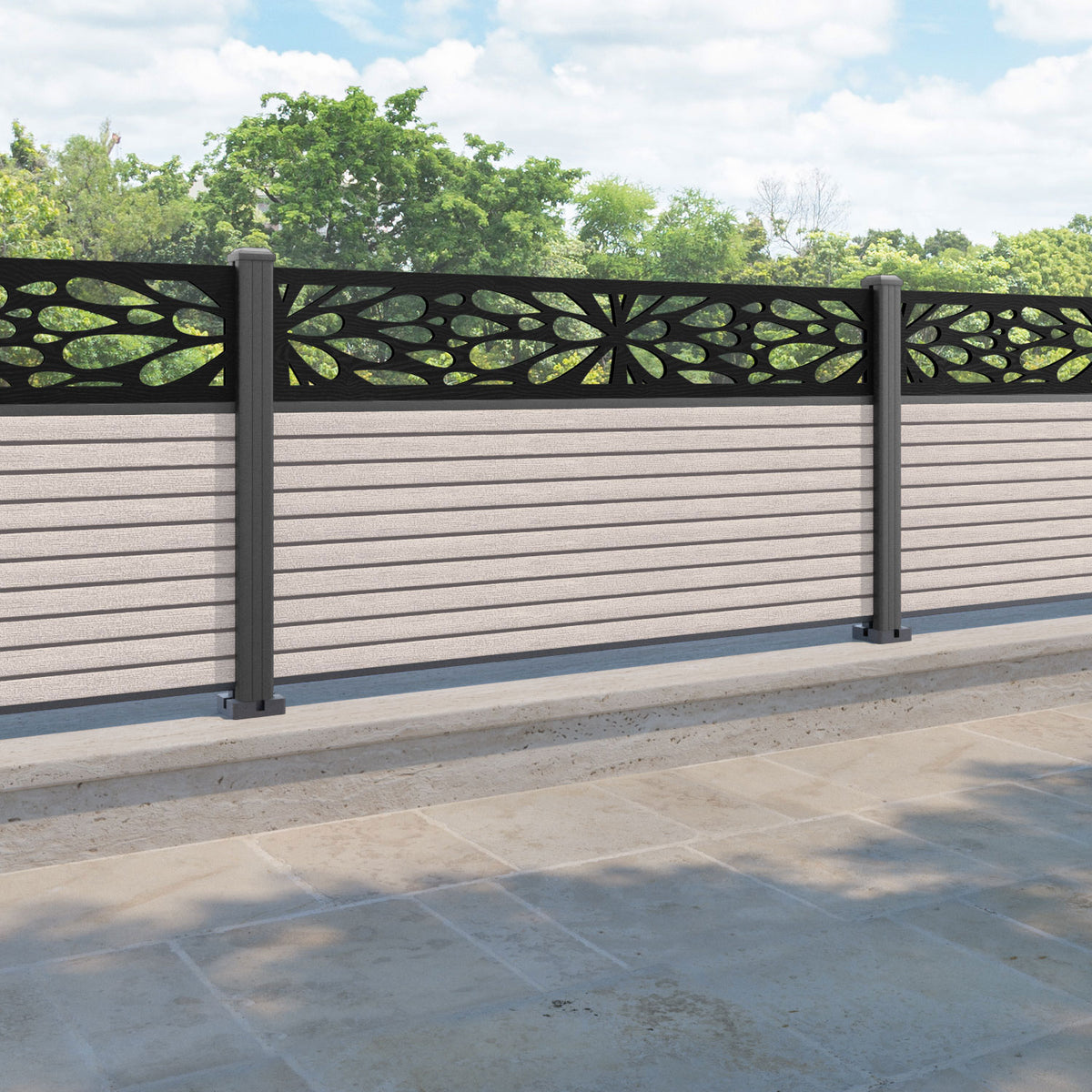 Hudson Blossom Fence Panel Mid Stone - with our aluminium posts