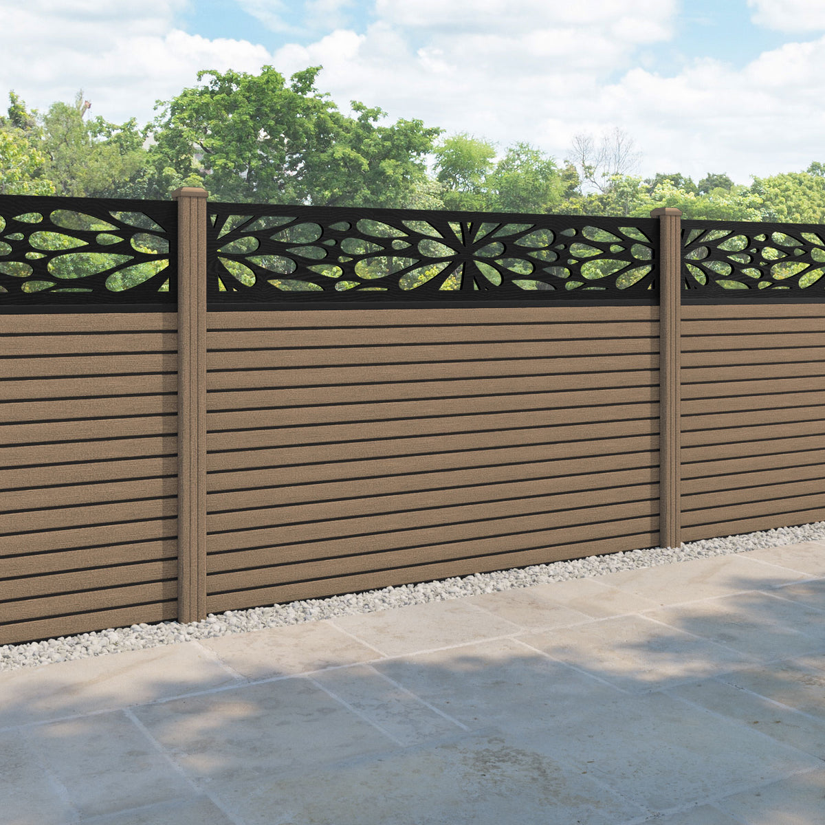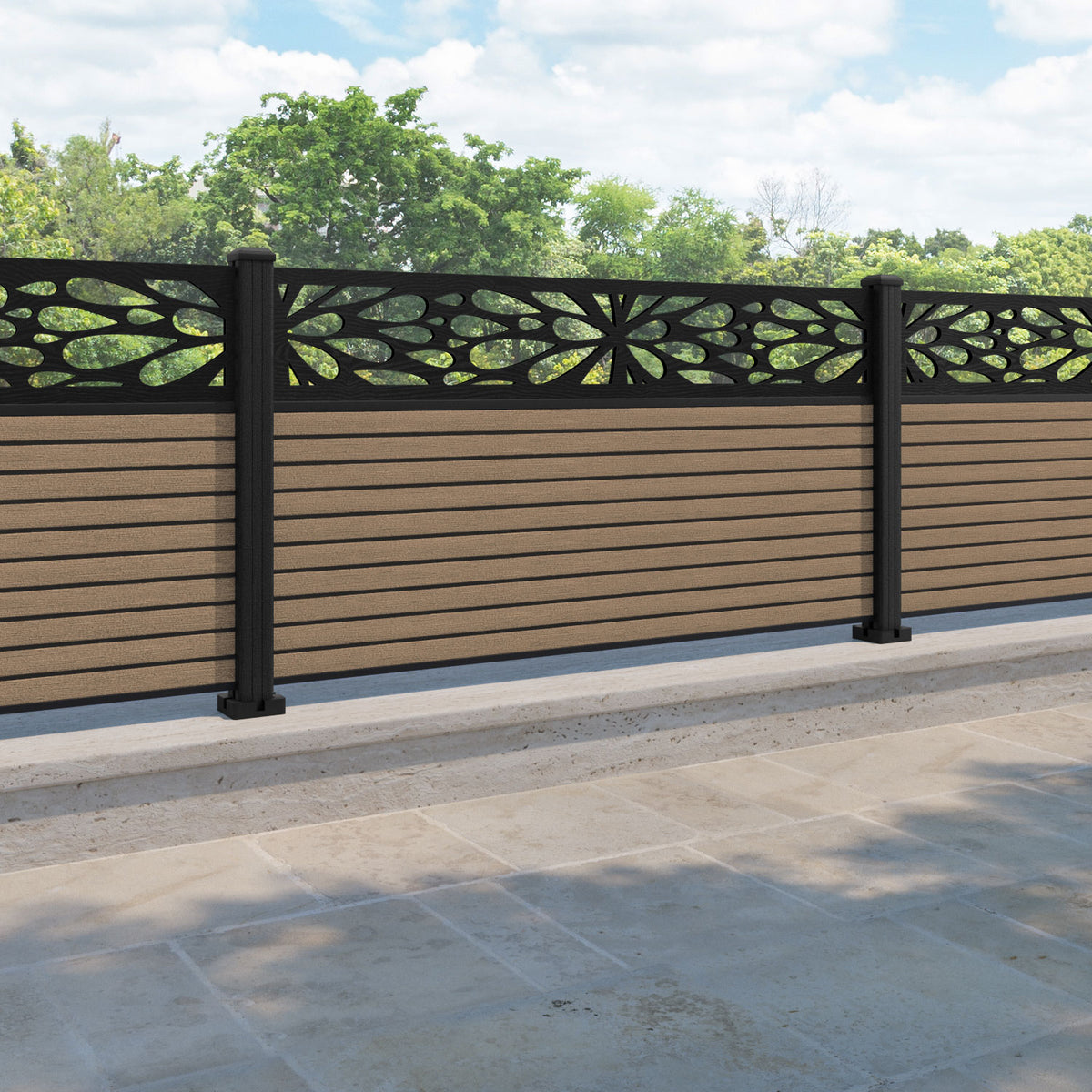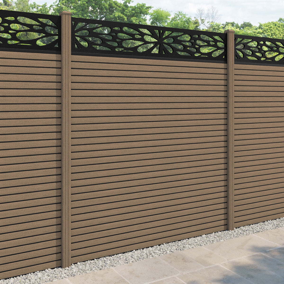 Hudson Blossom Fence Panel Teak - with our composite posts