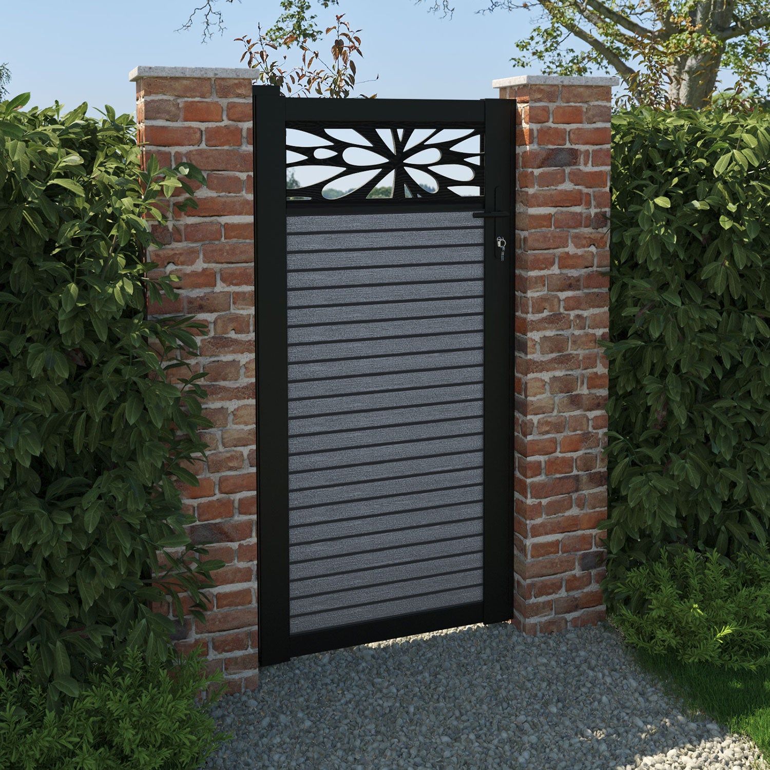 Pair your gate with our eco-friendly composite or aluminium slats for a seamless match with our fencing collections, ensuring a stylish and cohesive look.
