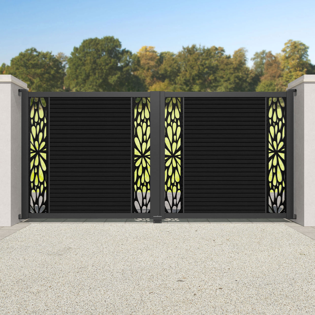 Hudson Blossom Straight Top Driveway Gate Black - Middle & End Screen