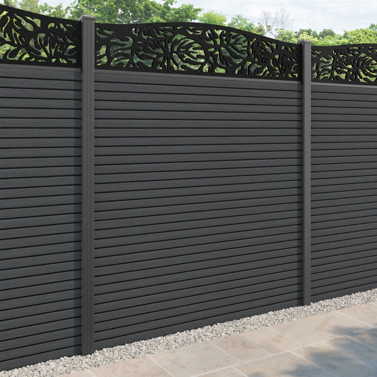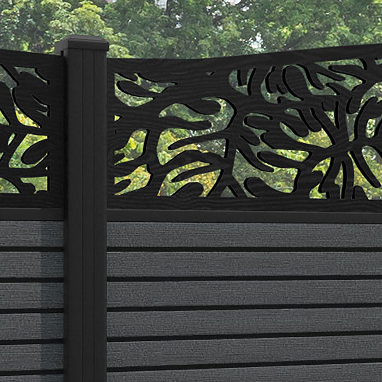 Hudson Botanic Curved Top Fence Panel Dark Grey - with our aluminium posts