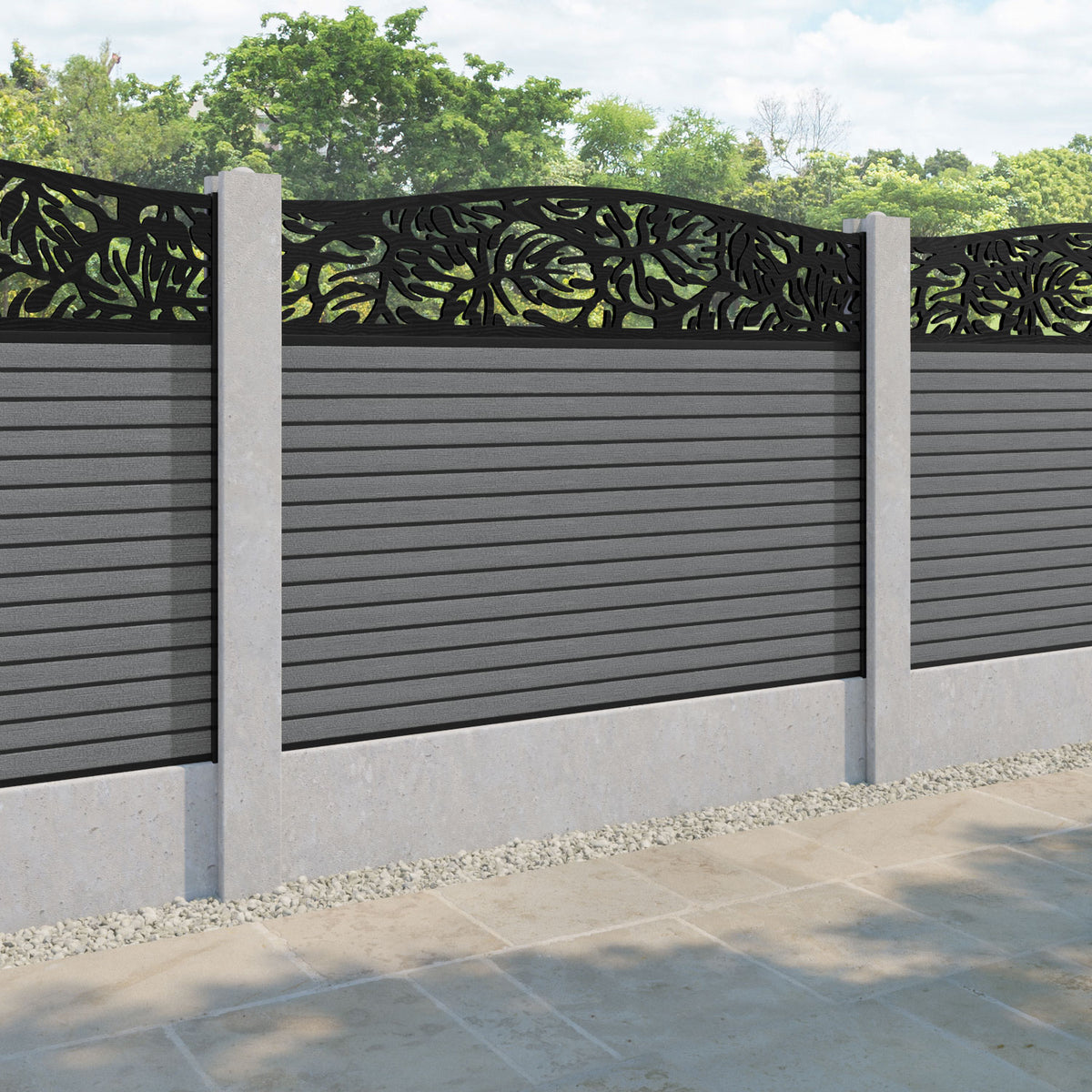 Hudson Botanic Curved Top Fence Panel Mid Grey - for existing concrete posts