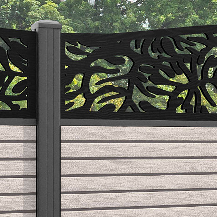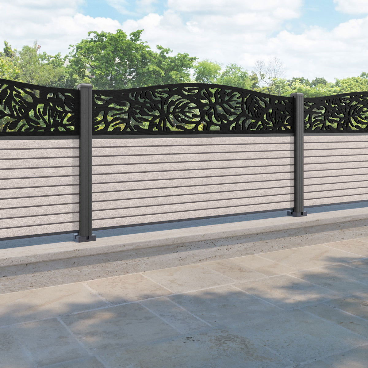 Hudson Botanic Curved Top Fence Panel Mid Stone - with our aluminium posts