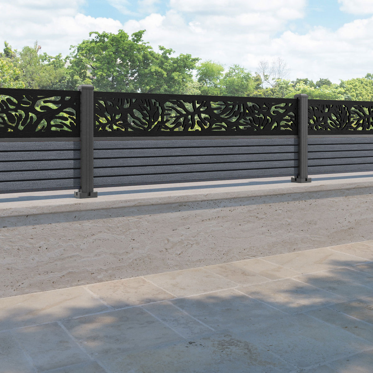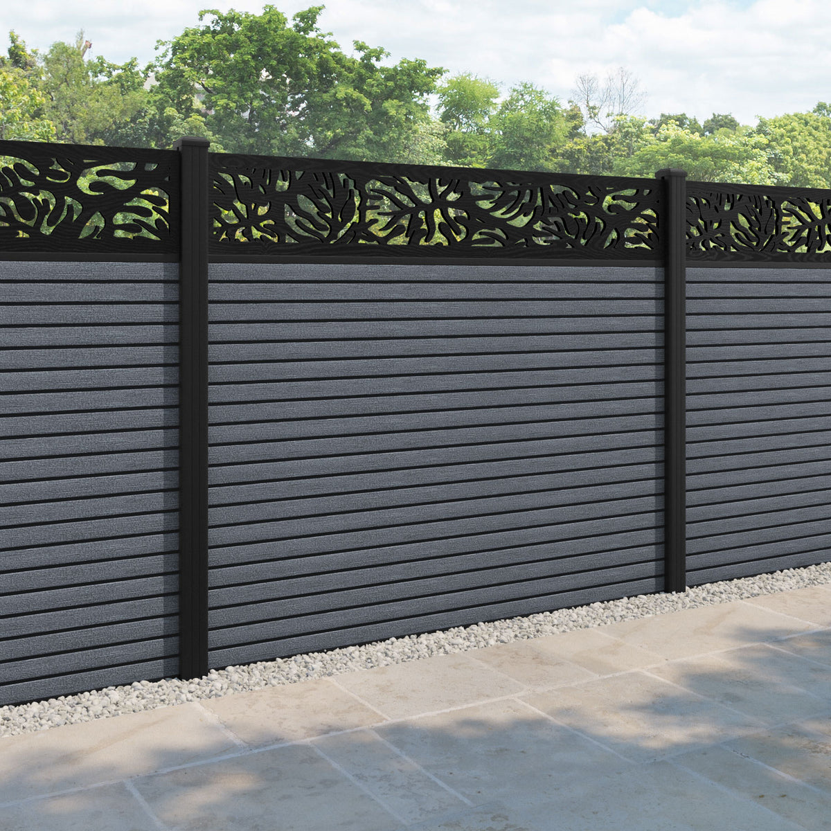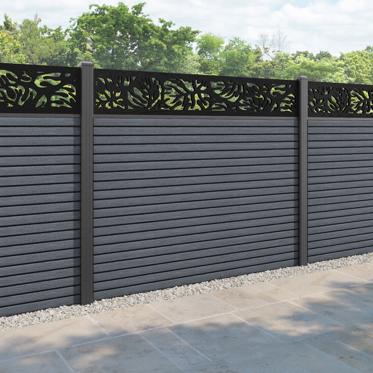 Hudson Botanic Fence Panel Anthracite - with our aluminium posts