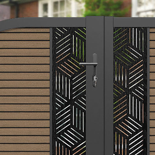 Hudson Cubed Curved Top Driveway Gate Teak - Middle Screen