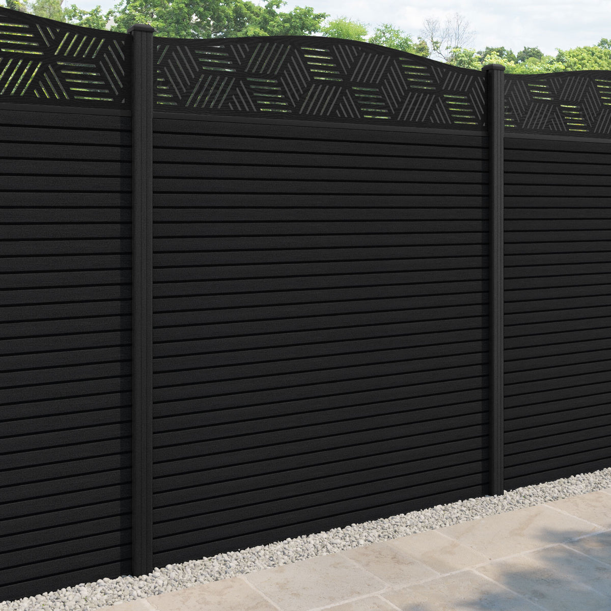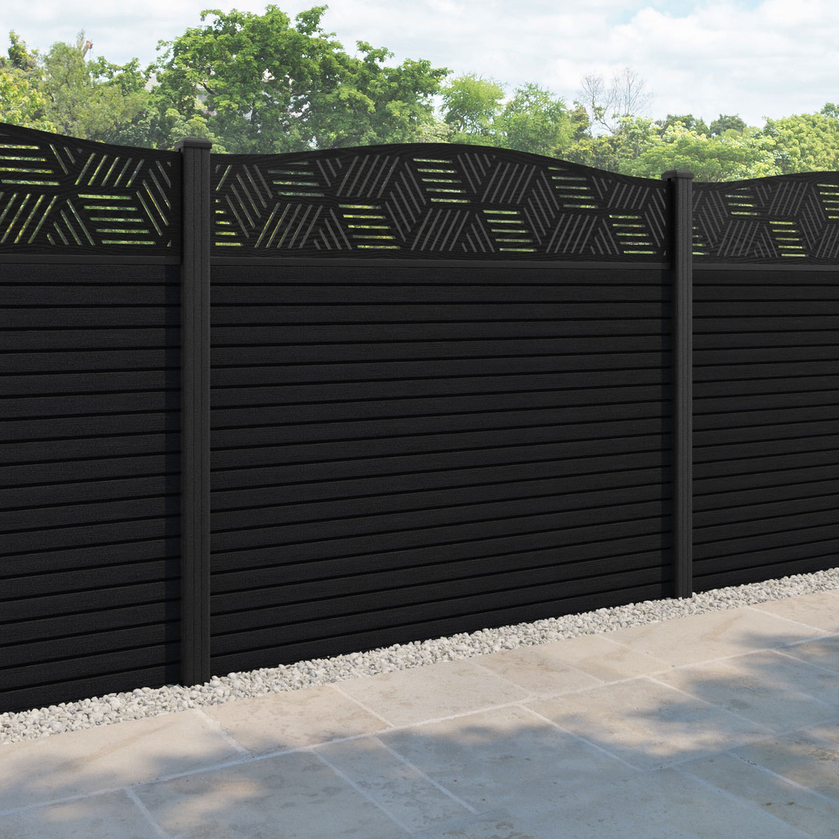 Hudson Cubed Curved Top Fence Panel Black - with our composite posts