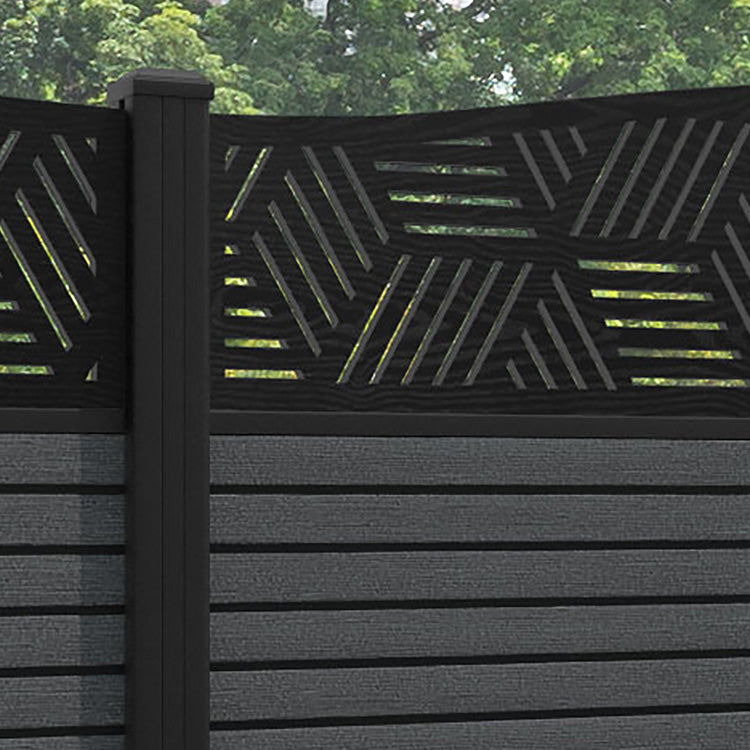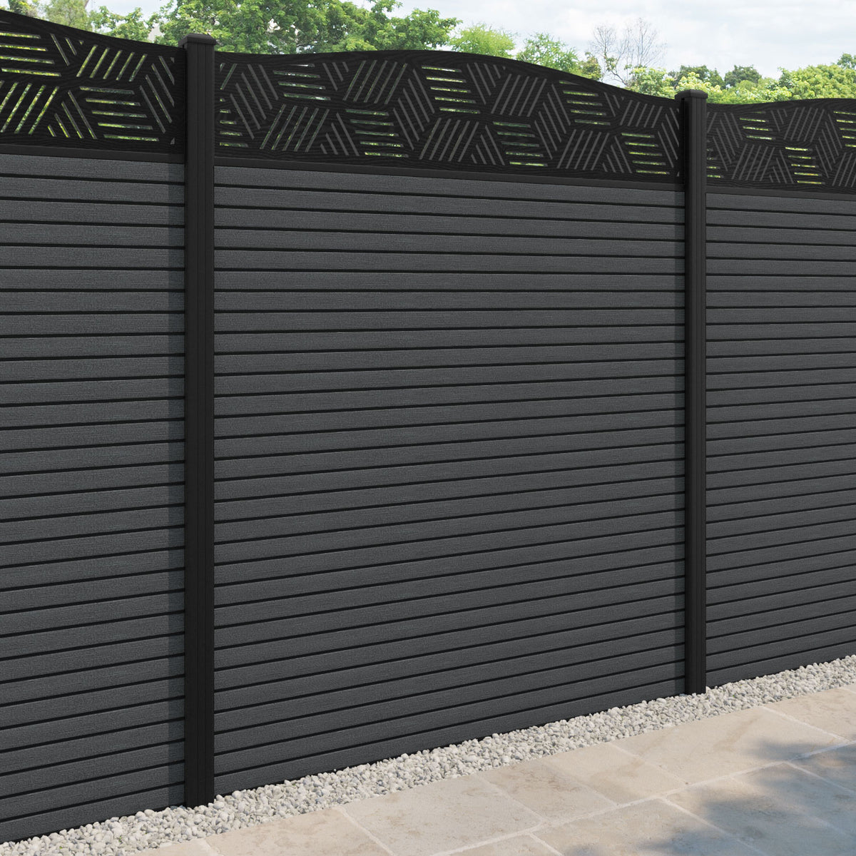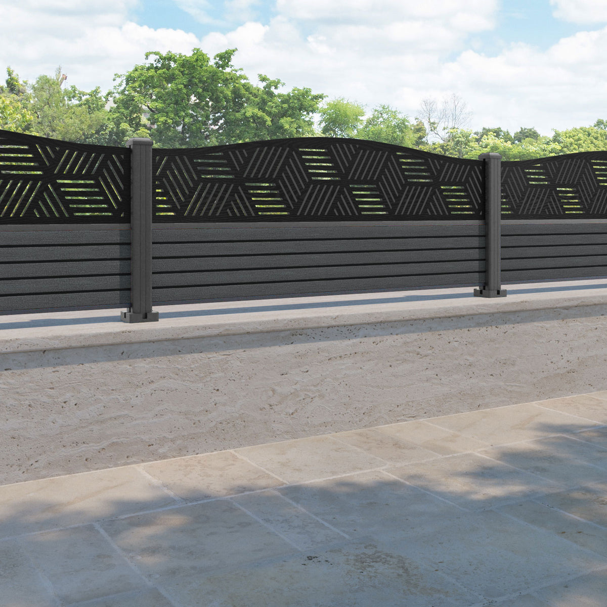 Hudson Cubed Curved Top Fence Panel Dark Grey - with our aluminium posts
