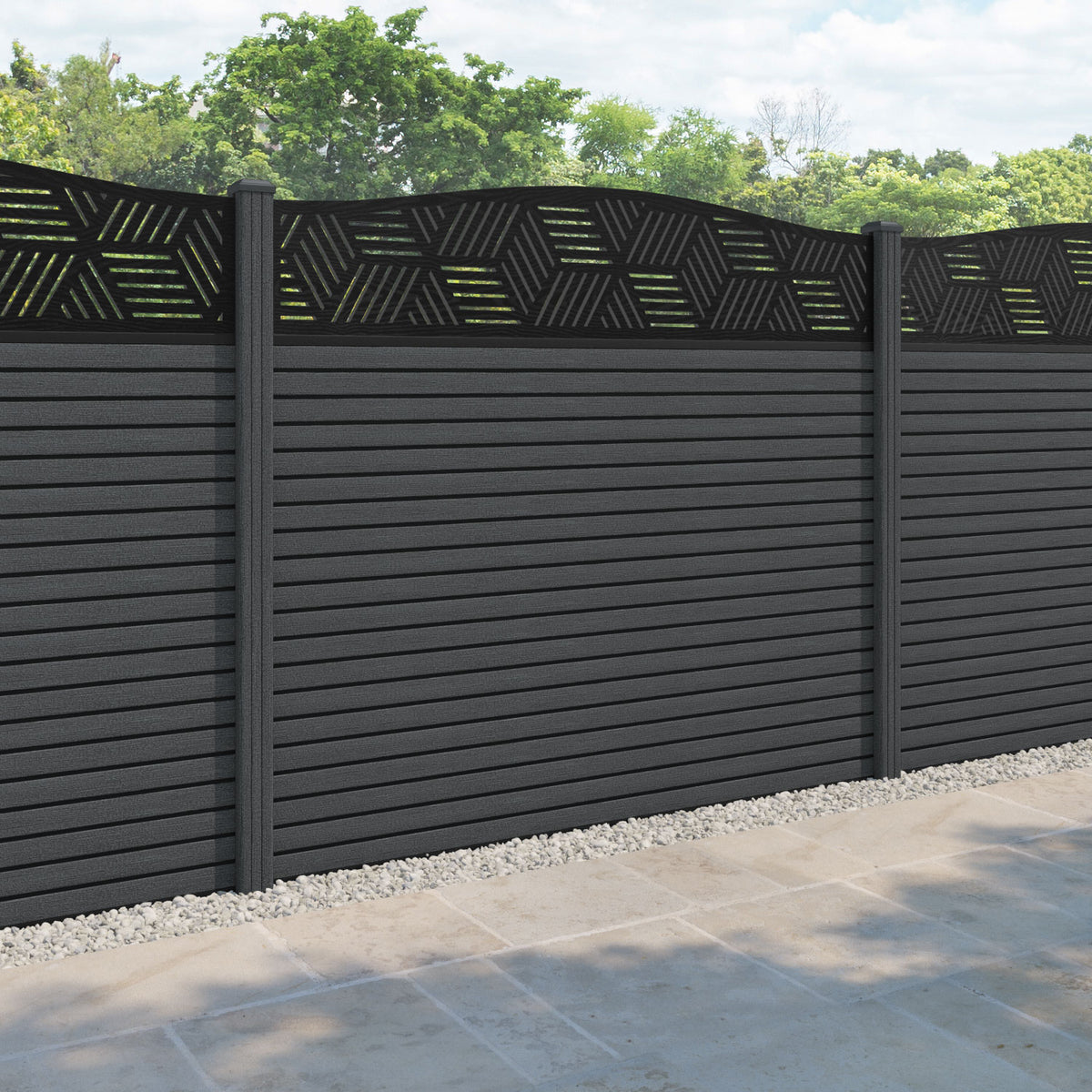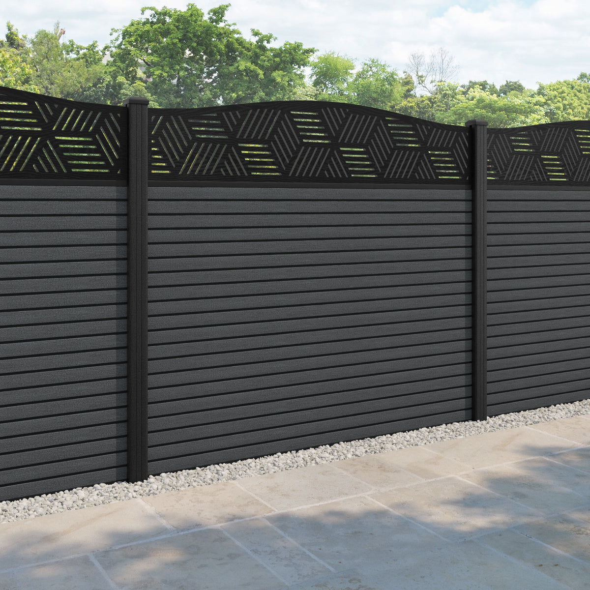 Hudson Cubed Curved Top Fence Panel Dark Grey - with our composite posts