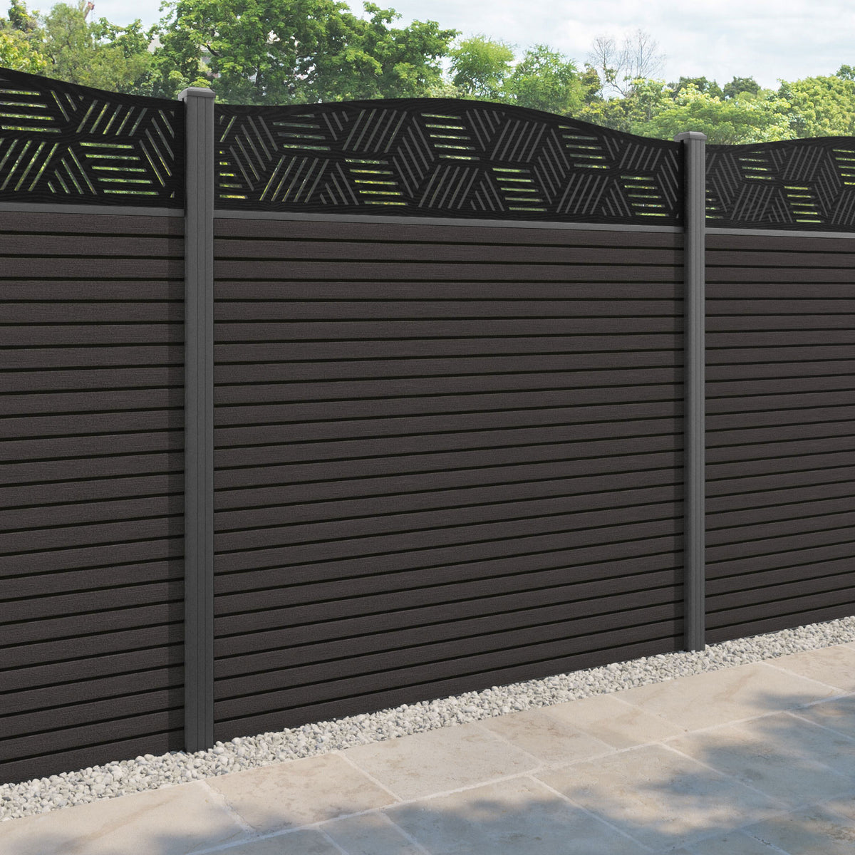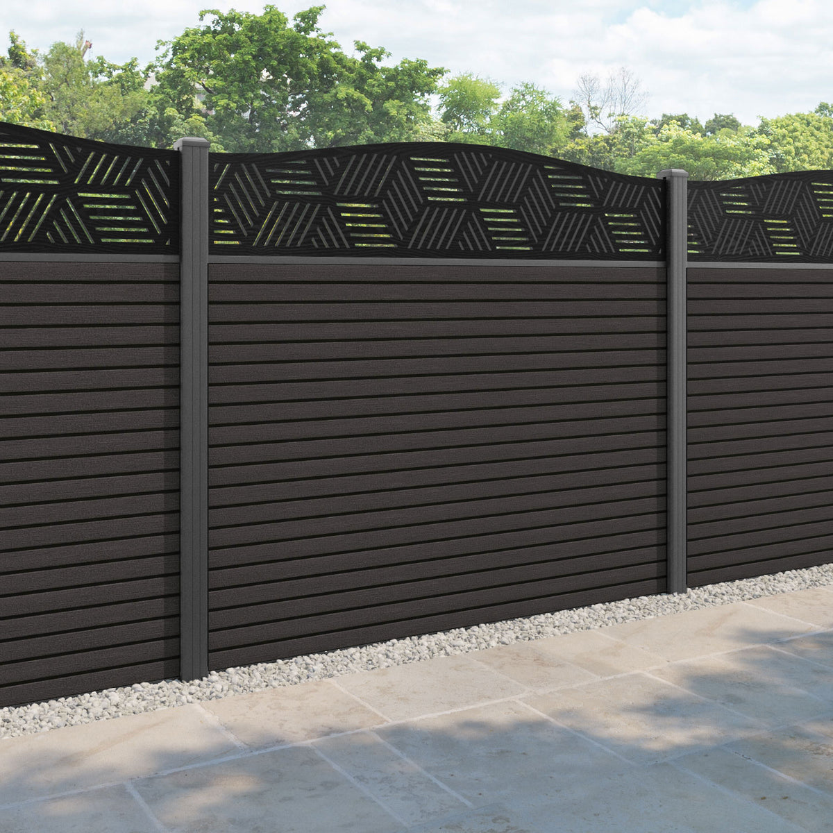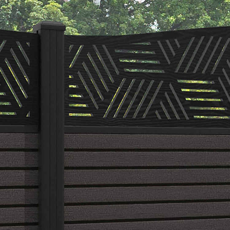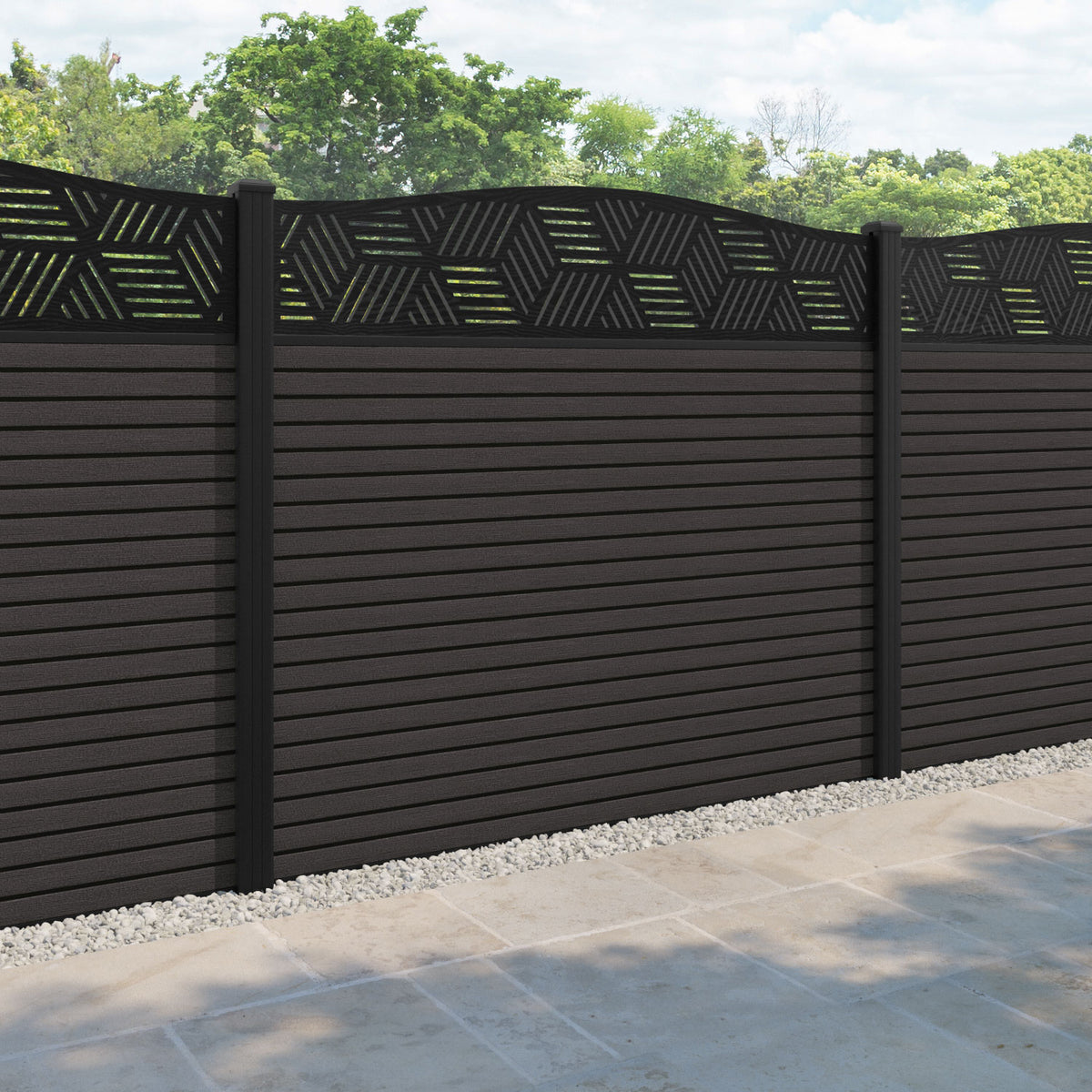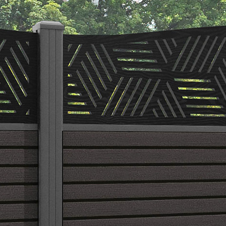 Hudson Cubed Curved Top Fence Panel Dark Oak - with our aluminium posts