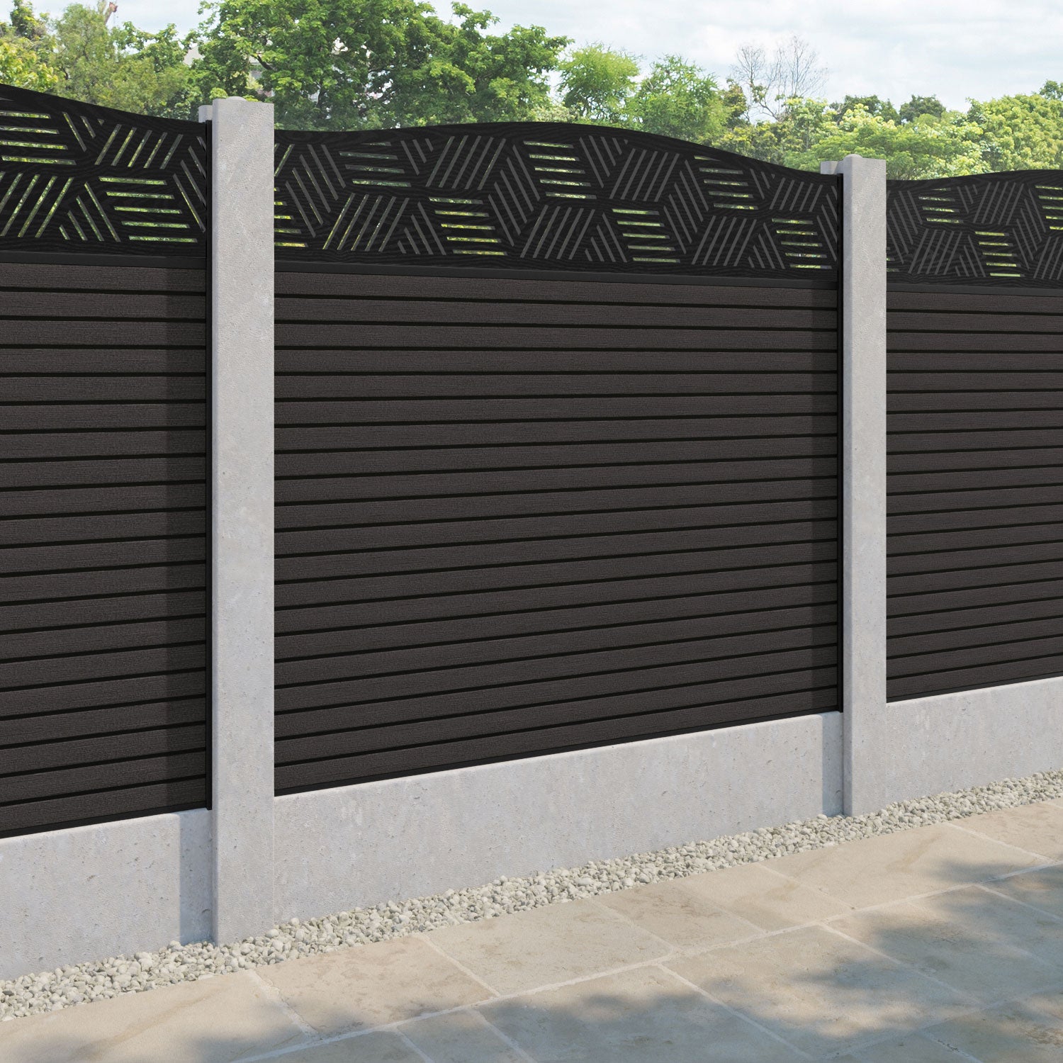 Hudson Cubed Curved Top Fence Panel Dark Oak - for existing concrete posts