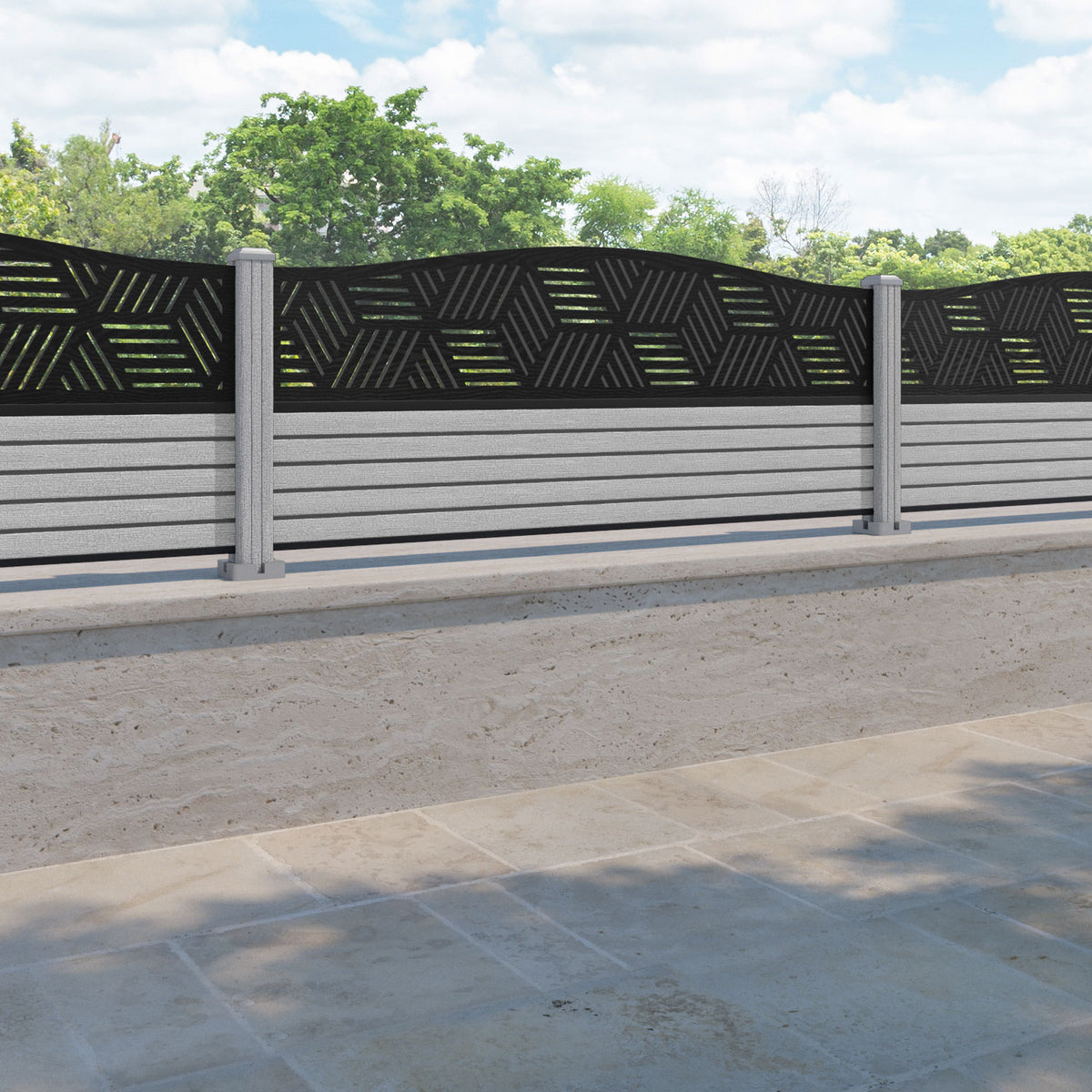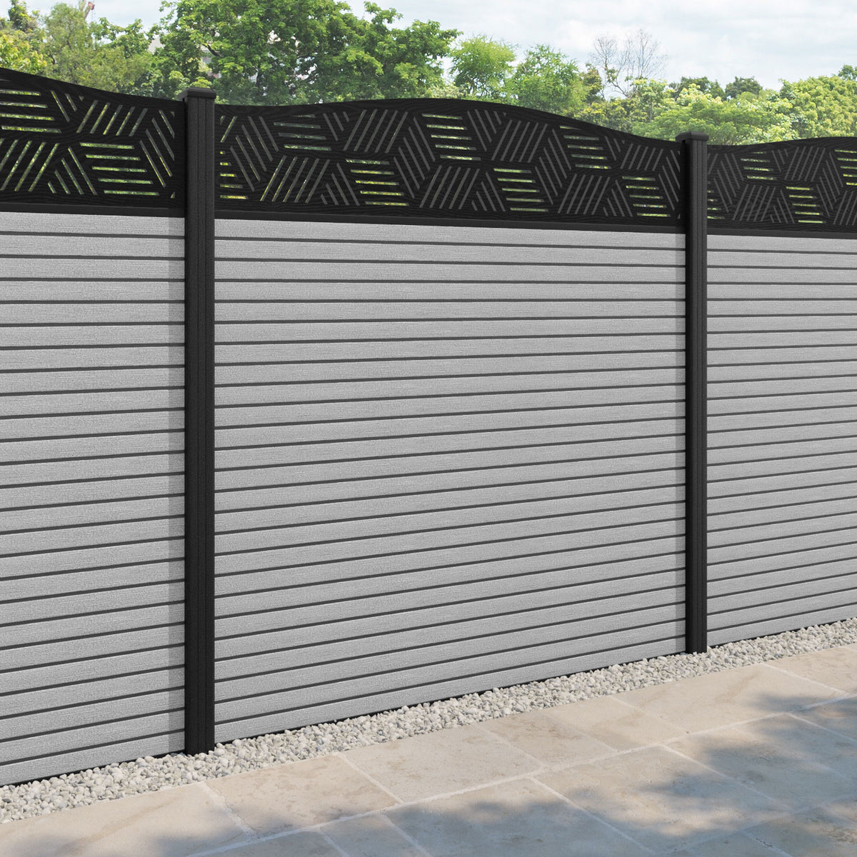 Hudson Cubed Curved Top Fence Panel Light Grey - with our composite posts