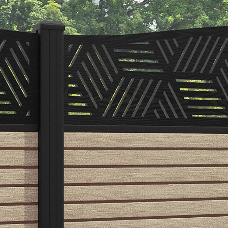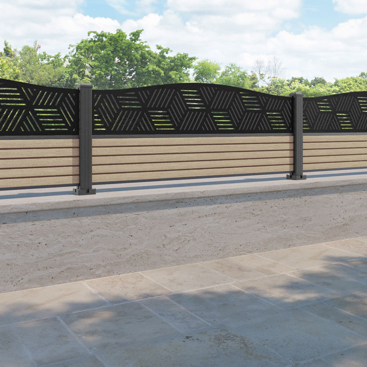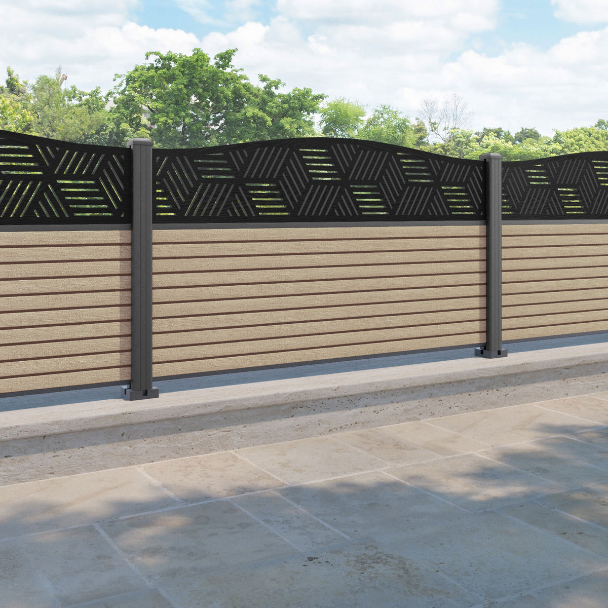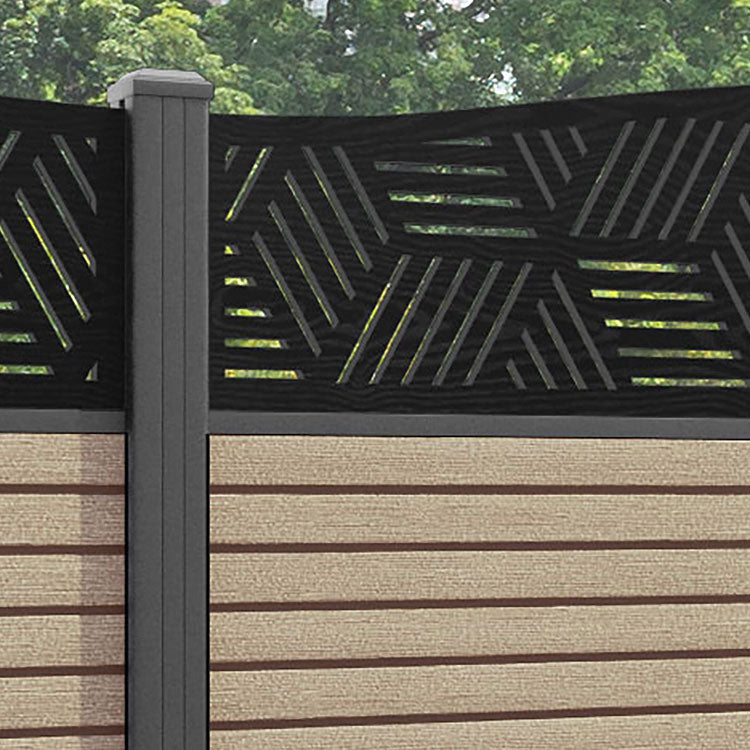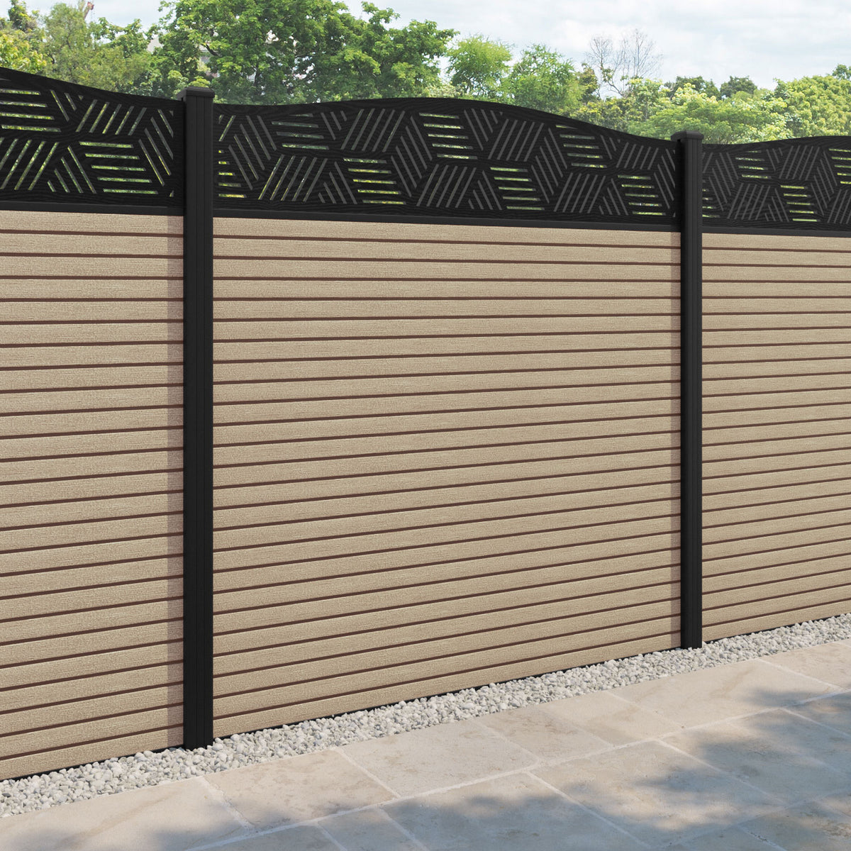 Hudson Cubed Curved Top Fence Panel Light Oak - with our aluminium posts