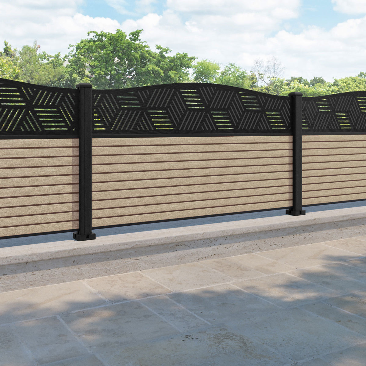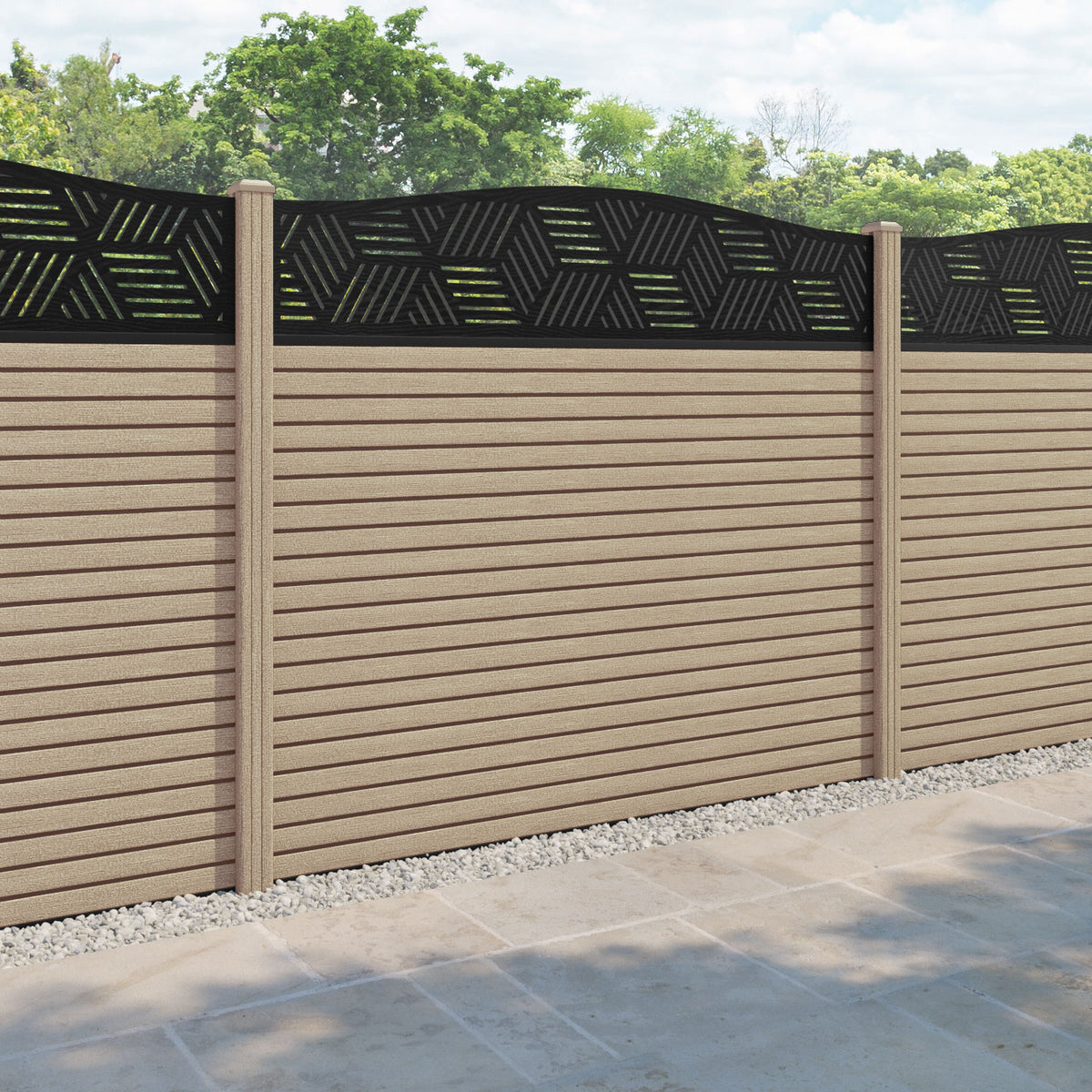 Hudson Cubed Curved Top Fence Panel Light Oak - with our composite posts