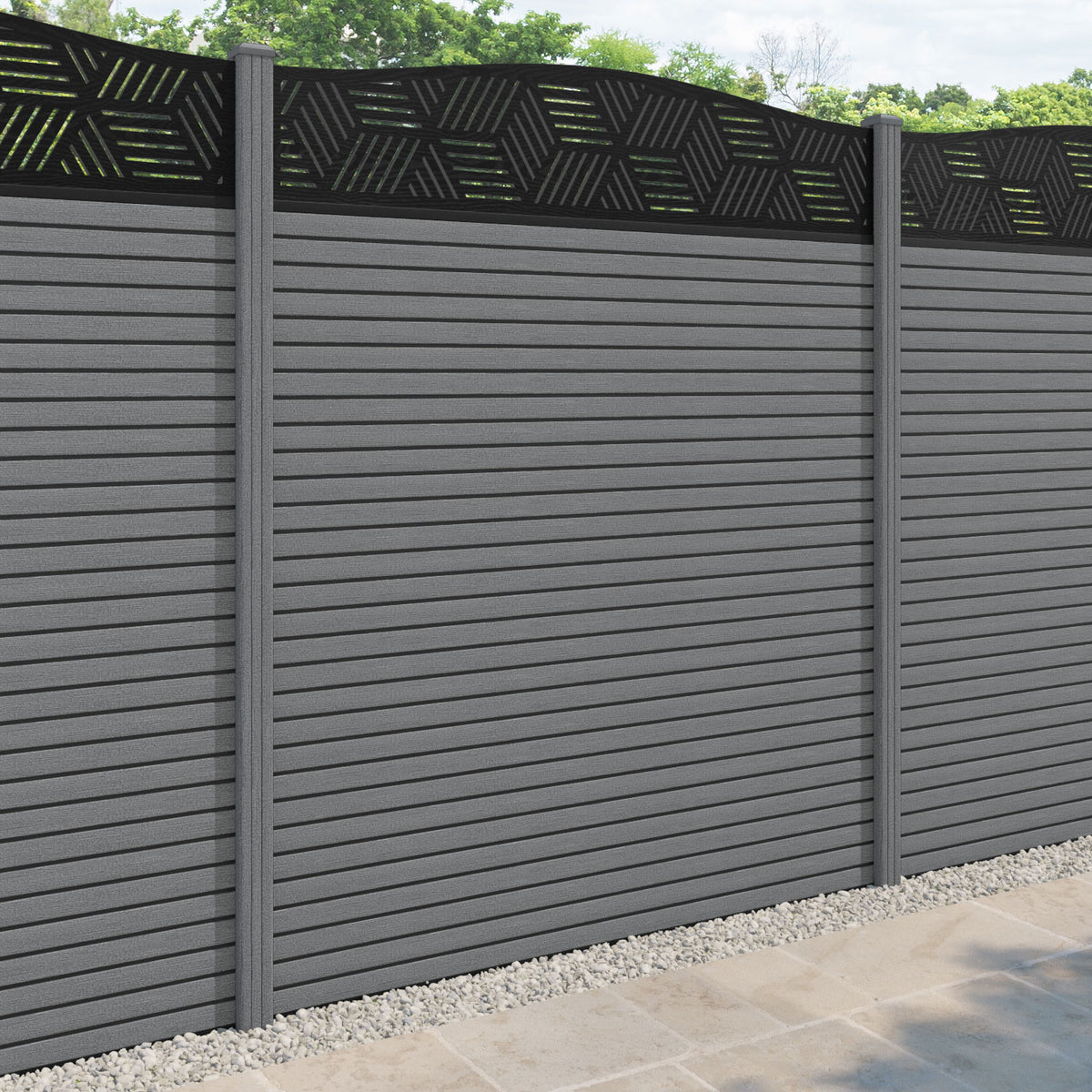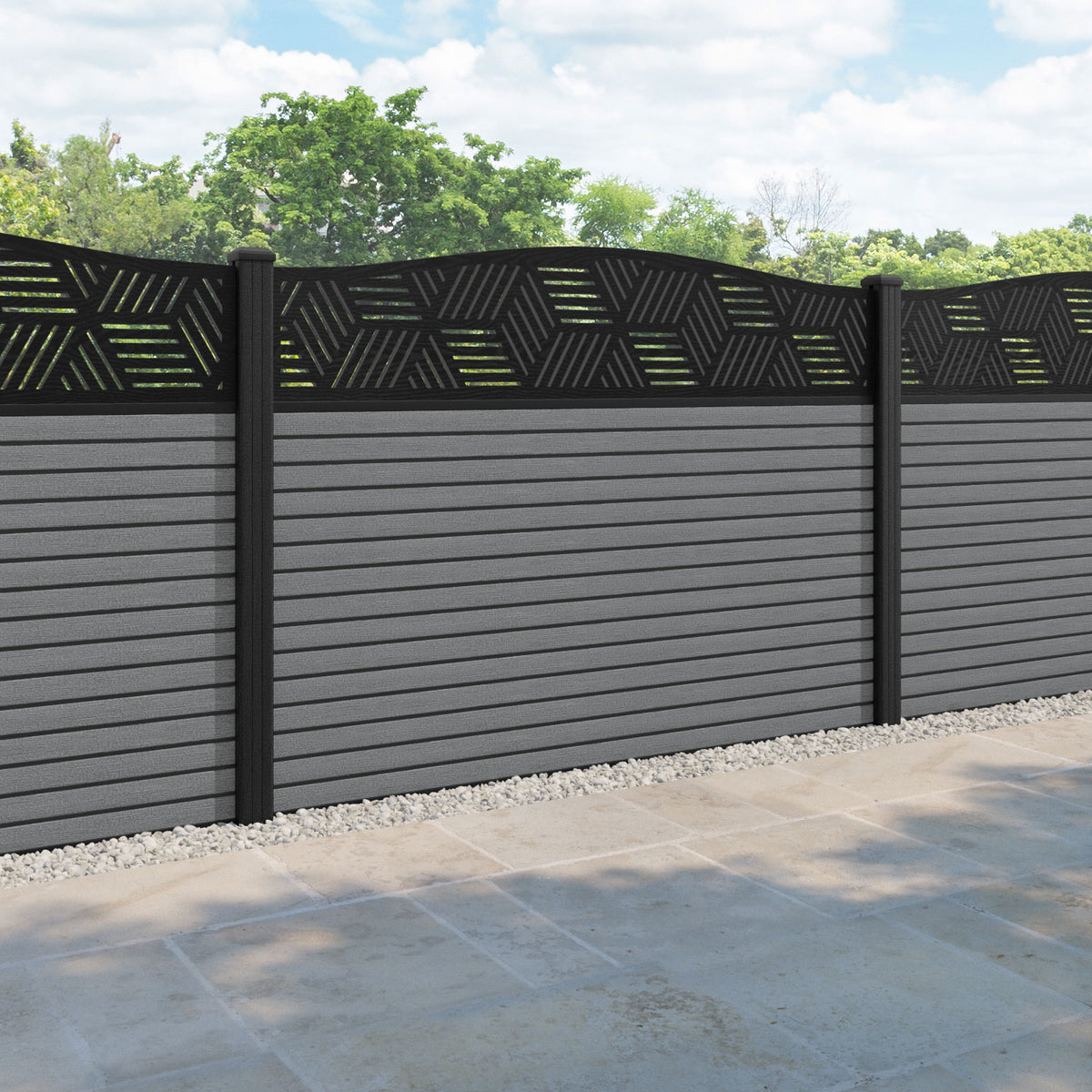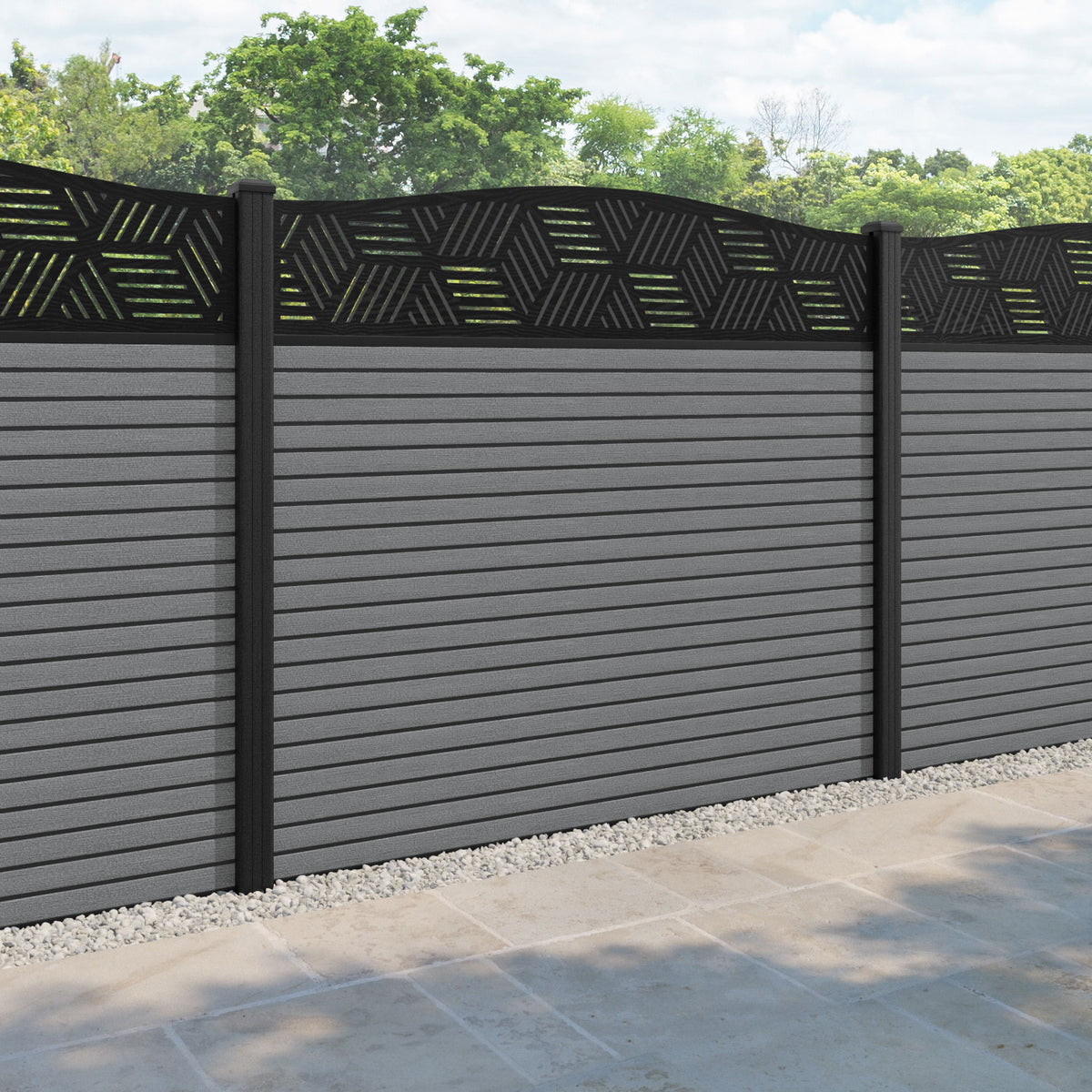 Hudson Cubed Curved Top Fence Panel Mid Grey - with our composite posts