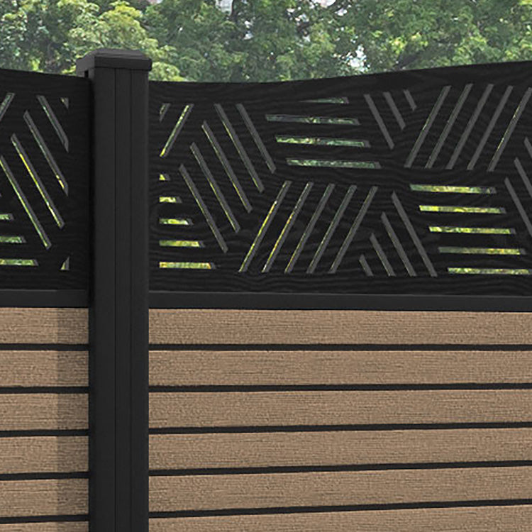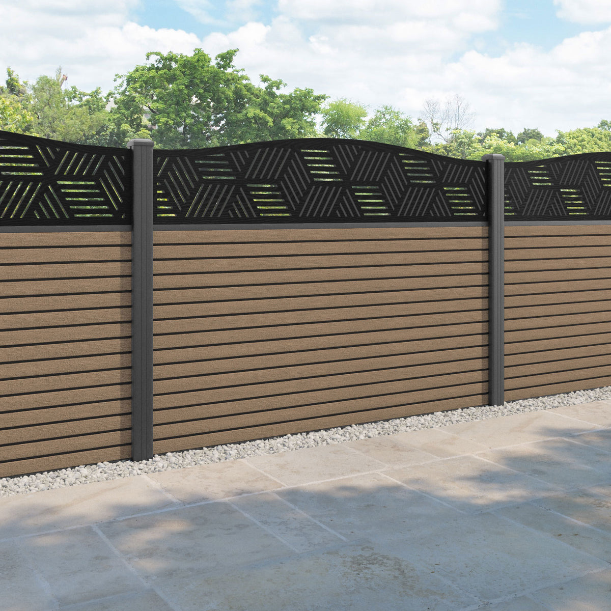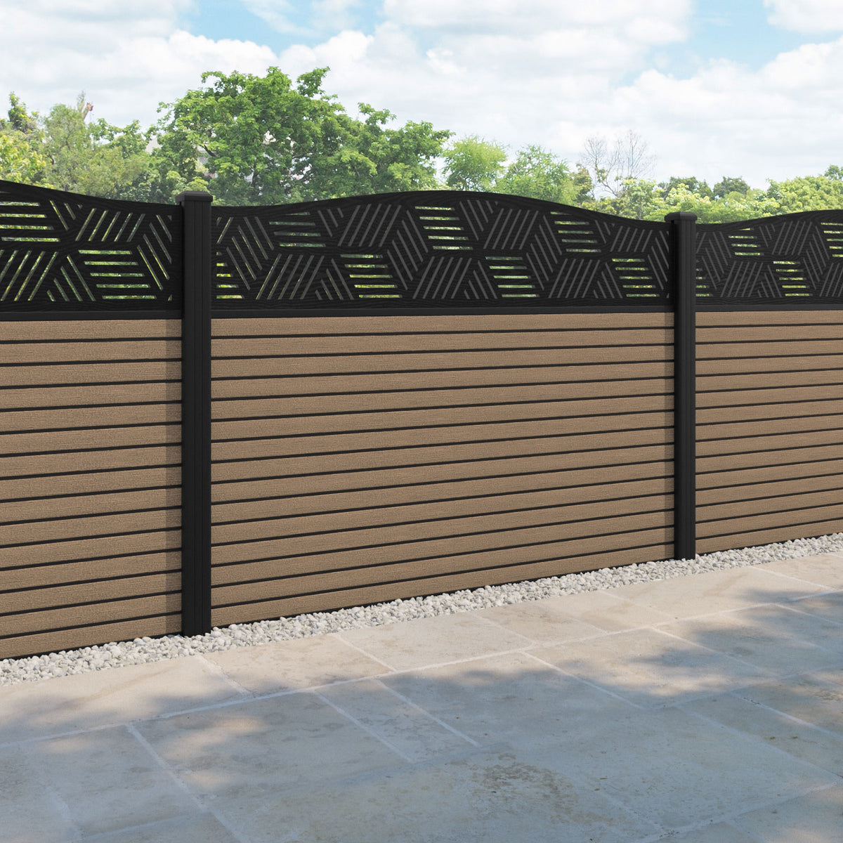 Hudson Cubed Curved Top Fence Panel Teak - with our aluminium posts