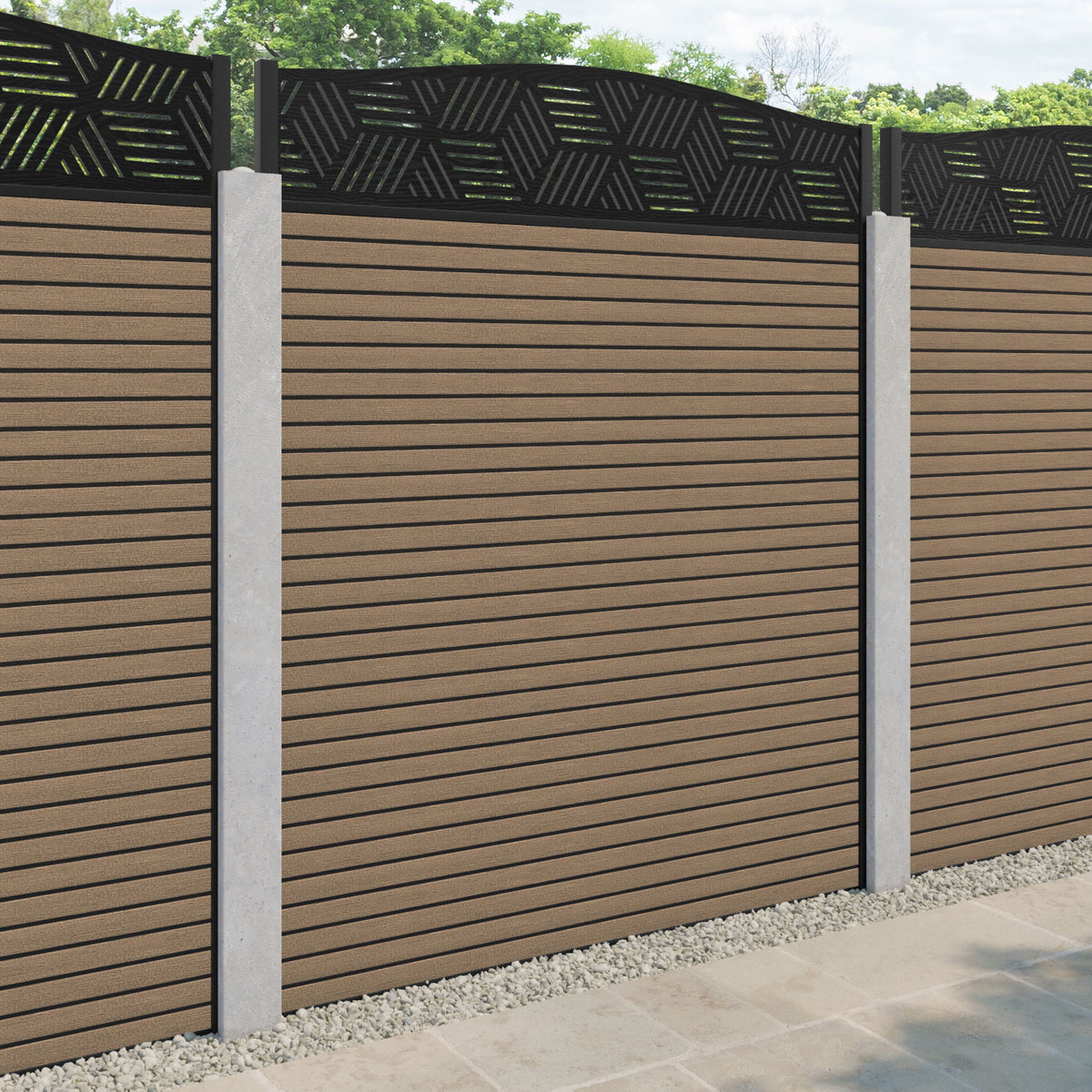 Hudson Cubed Curved Top Fence Panel Teak - for existing concrete posts