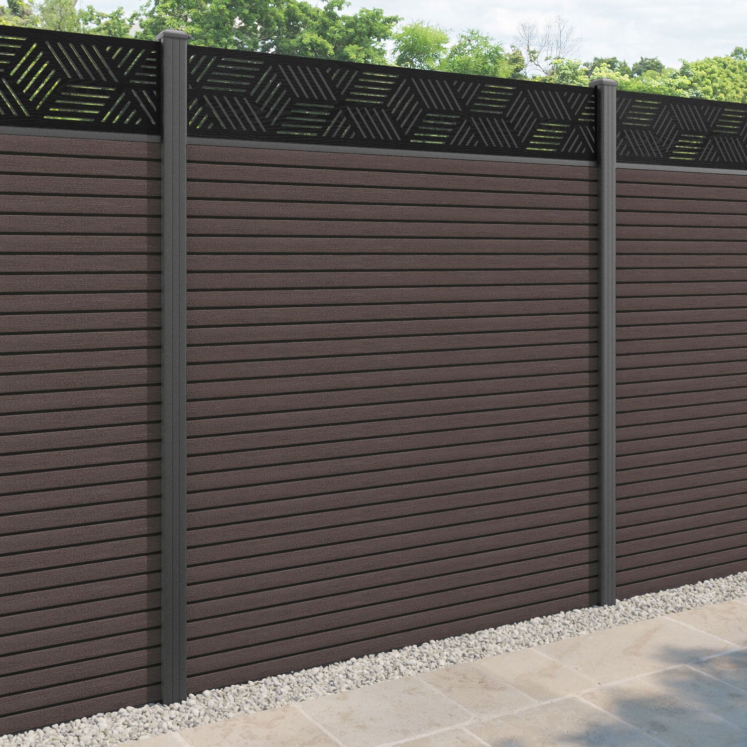 Hudson Cubed Fence Panel Mid Brown - with our aluminium posts