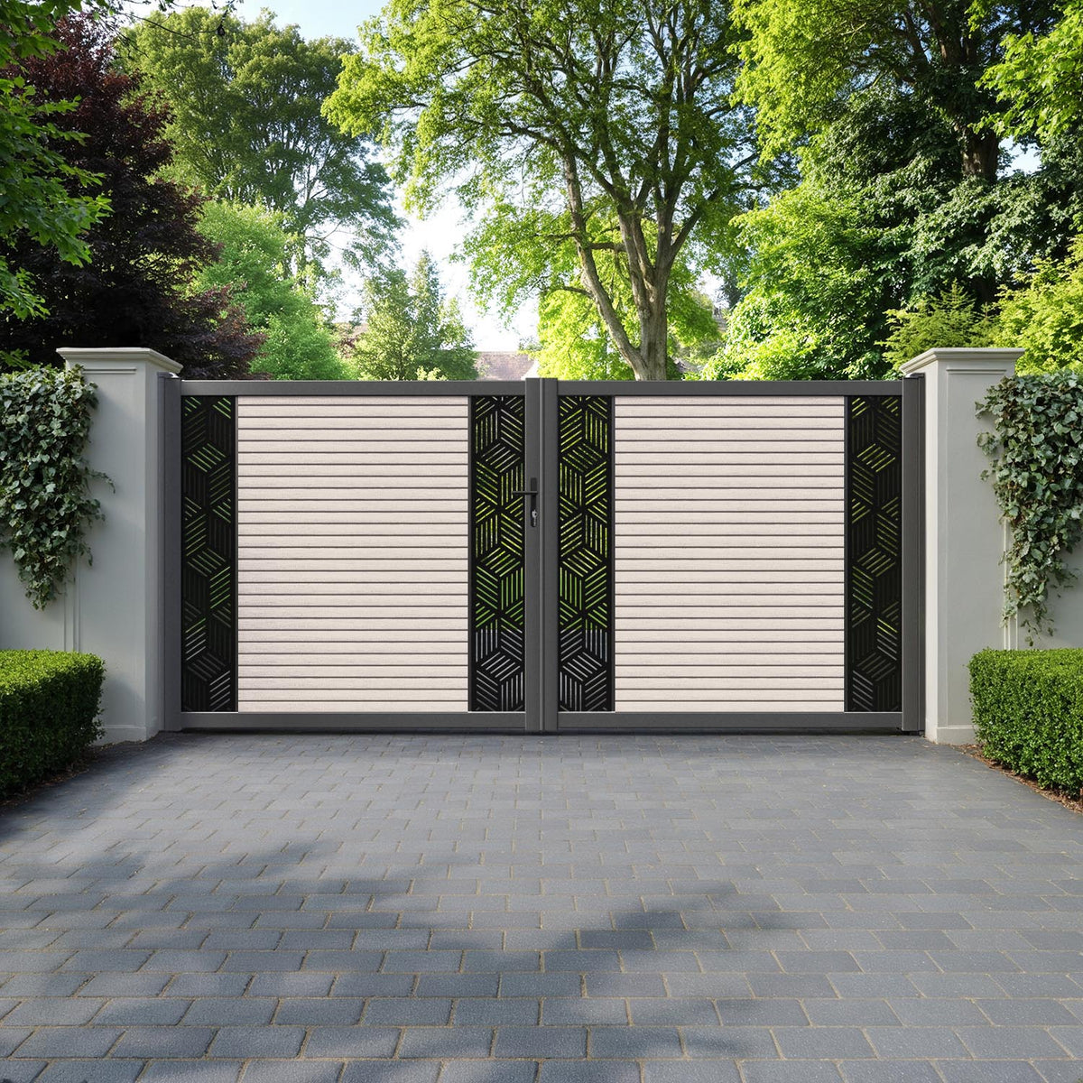 Hudson Cubed Straight Top Driveway Gate Mid Stone - Middle & End Screen