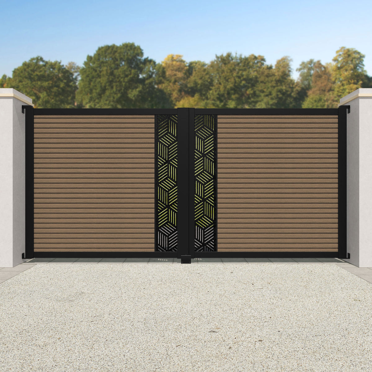 Hudson Cubed Straight Top Driveway Gate Teak - Middle Screen