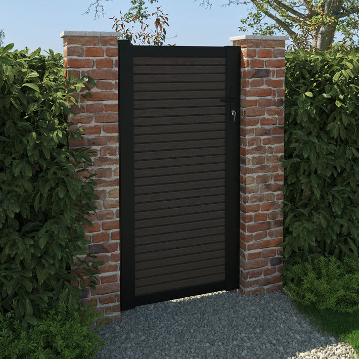 Pair your gate with our eco-friendly composite or aluminium slats for a seamless match with our fencing collections, ensuring a stylish and cohesive look.