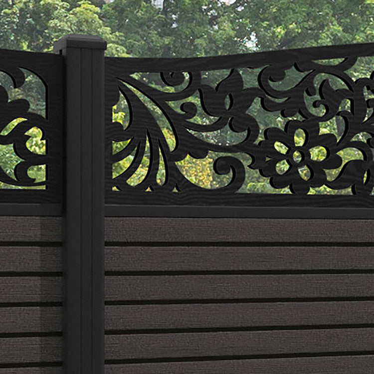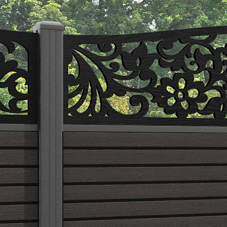 Hudson Eden Curved Top Fence Panel Dark Oak - with our aluminium posts