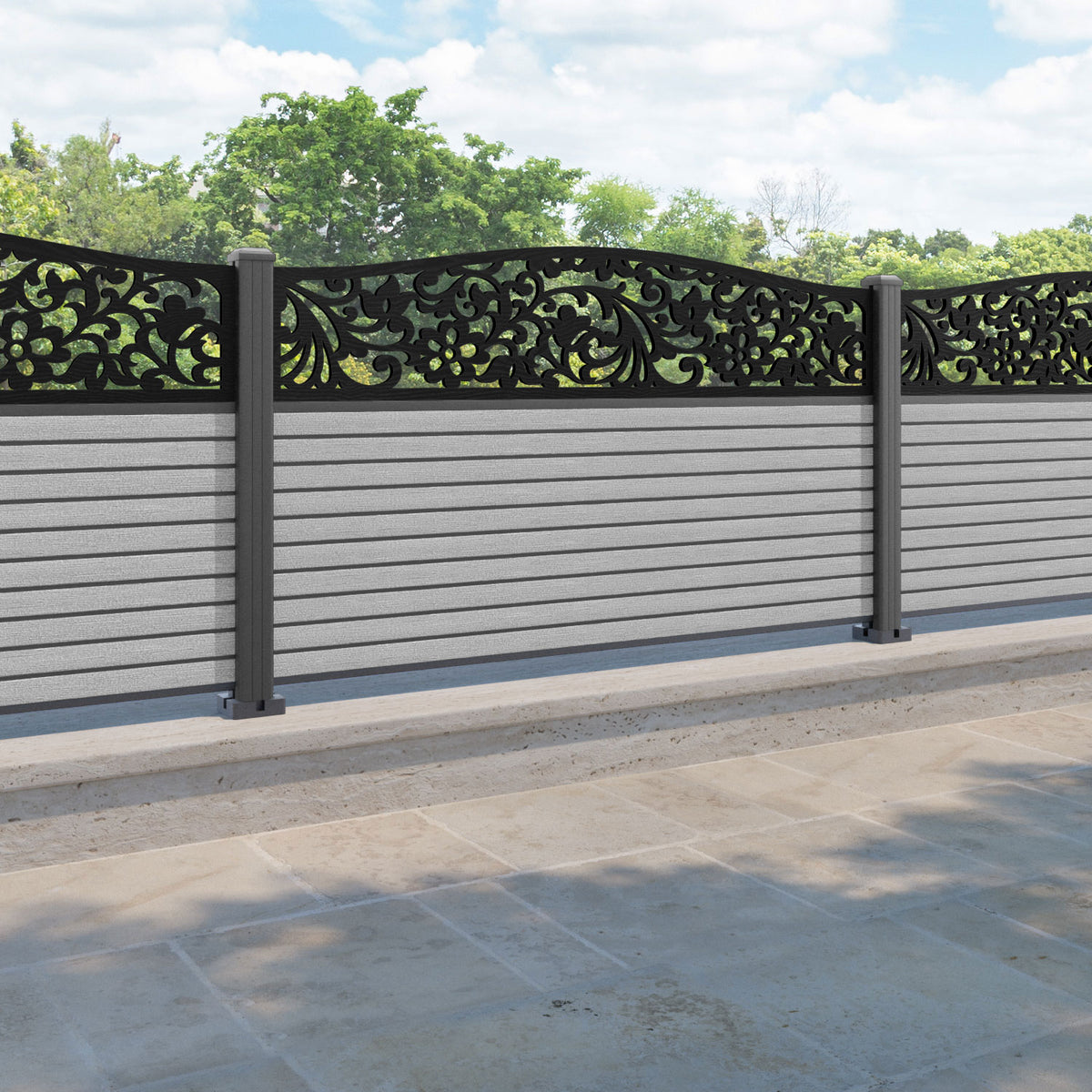 Hudson Eden Curved Top Fence Panel Light Grey - with our aluminium posts