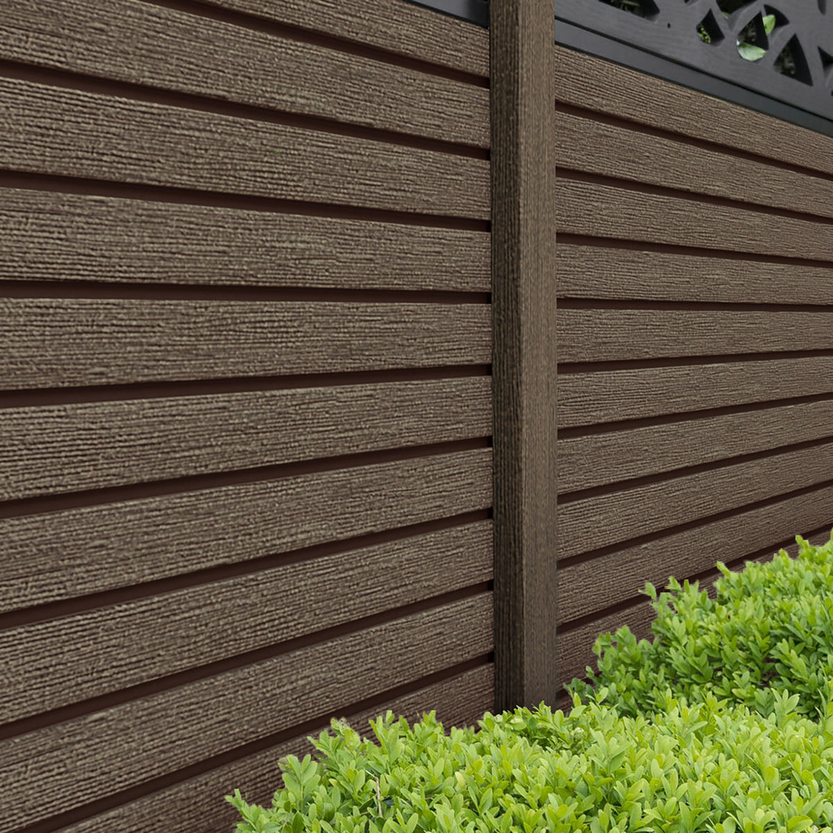 Hudson Eden Curved Top Fence Panel Mid Brown - with our composite posts