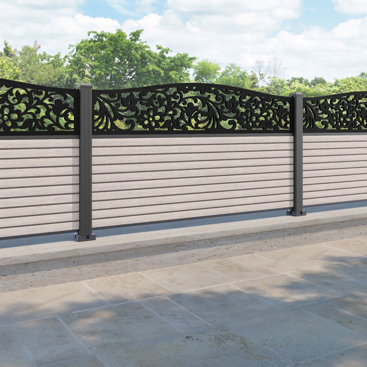 Hudson Eden Curved Top Fence Panel Mid Stone - with our aluminium posts
