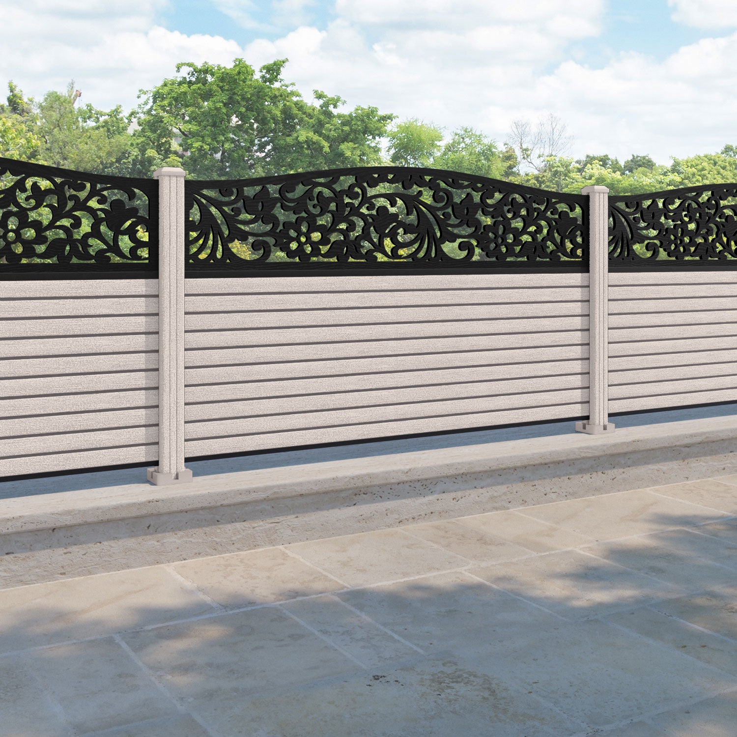 Hudson Eden Curved Top Fence Panel Mid Stone - with our composite posts