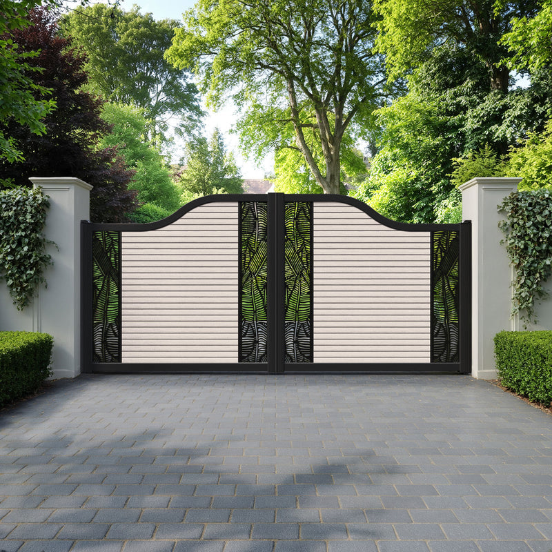 Hudson Feather Curved Top Driveway Gate Mid Stone - Middle & End Screen