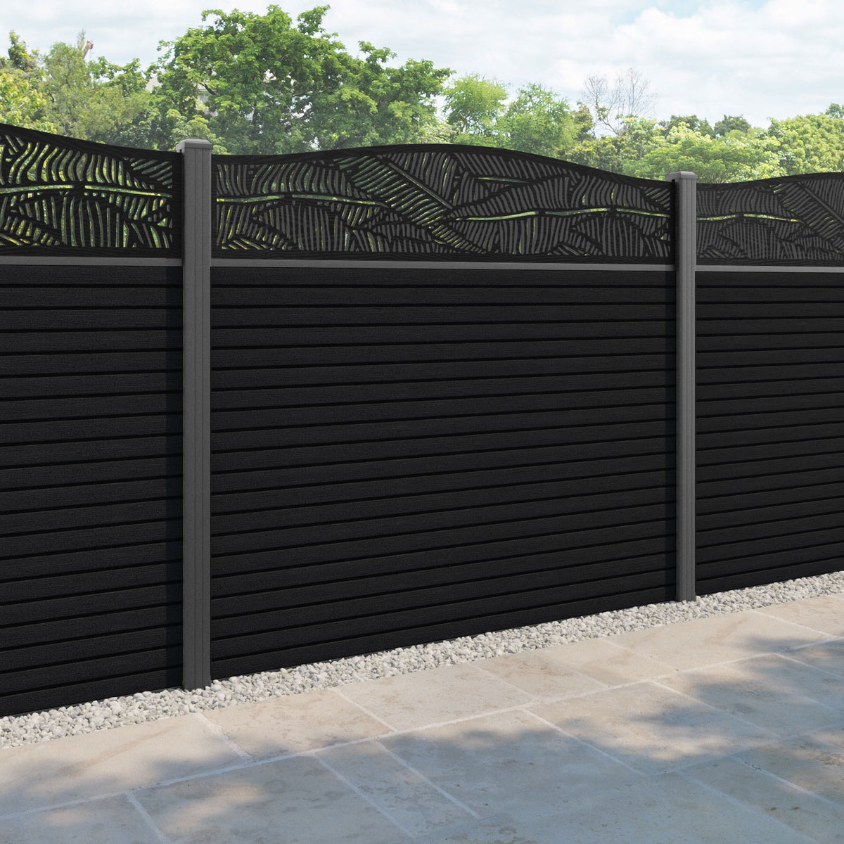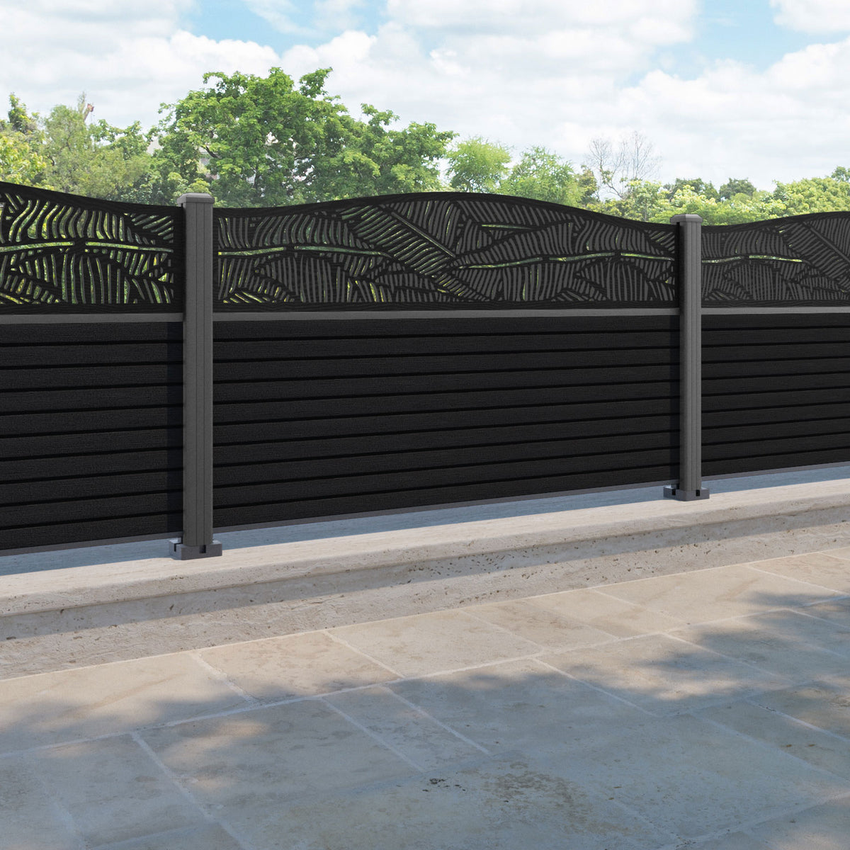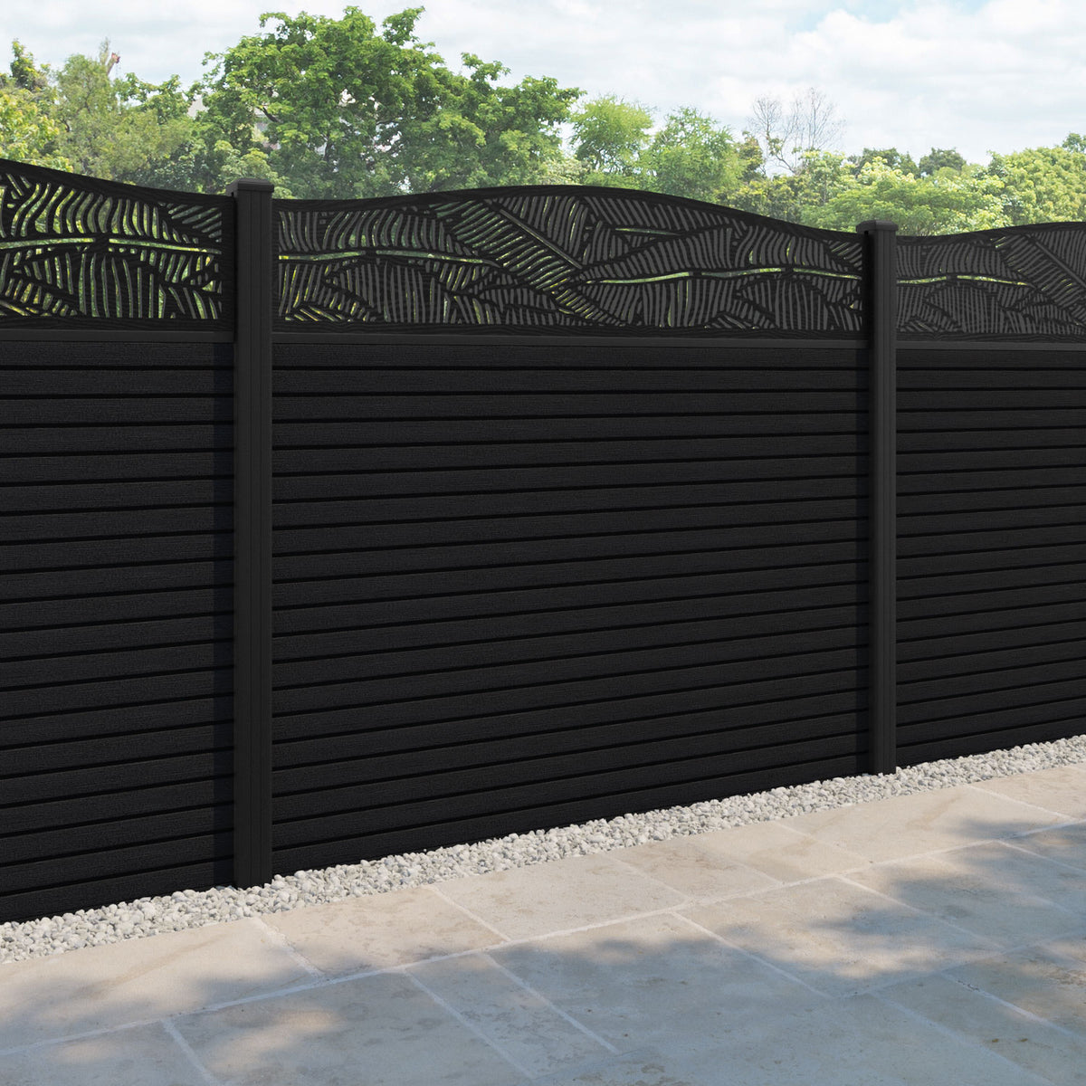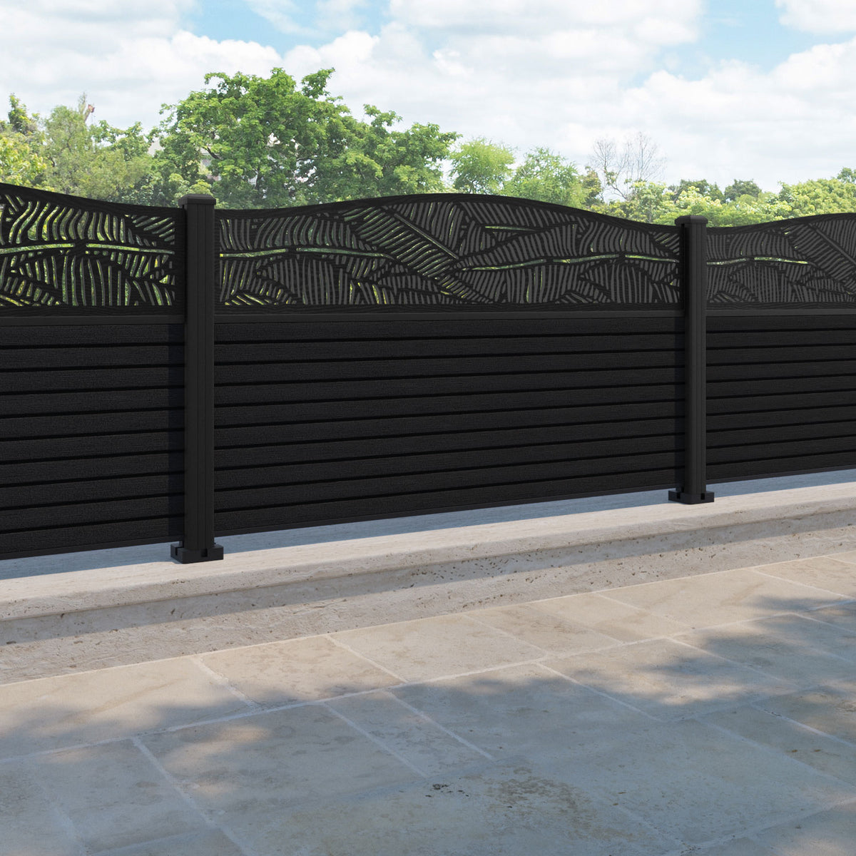 Hudson Feather Curved Top Fence Panel Black - with our aluminium posts