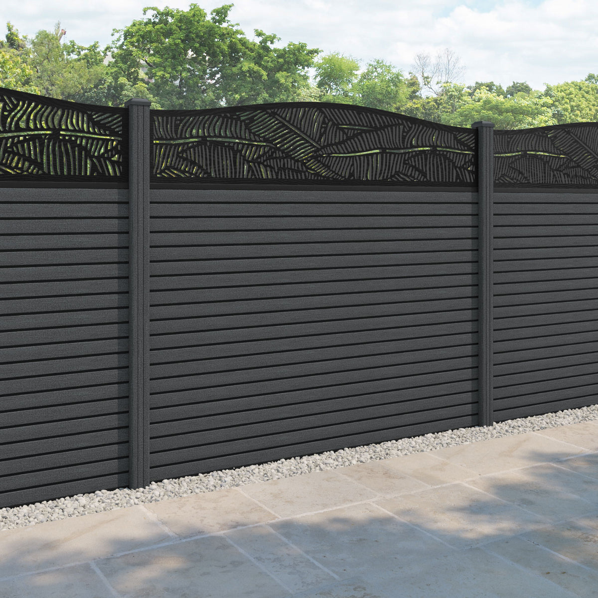 Hudson Feather Curved Top Fence Panel Dark Grey - with our composite posts