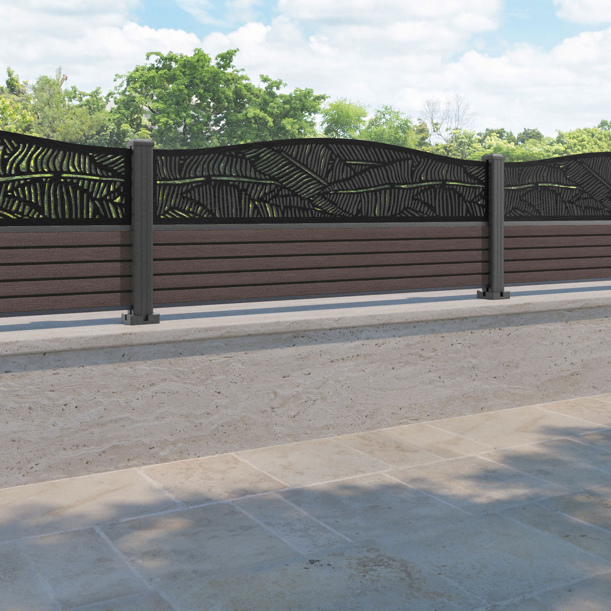 Our 18mm thick mid brown premium composite fence slats paired with our high-grade aluminium fence posts and Feather screen create an elegant, versatile, and eco-friendly fencing solution. Not only is this fencing responsibly sourced, it is also durable, long-lasting and requires no maintenance or painting.